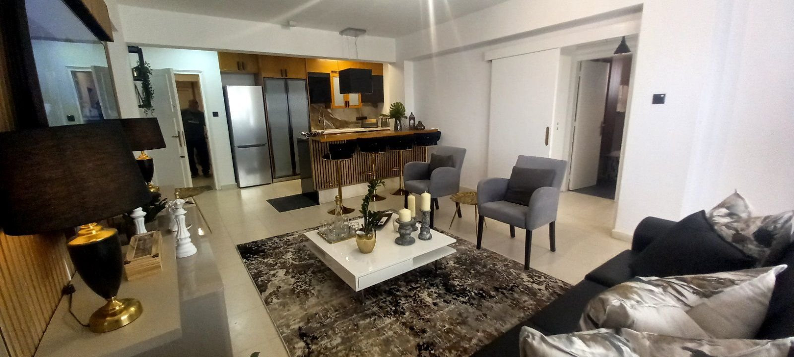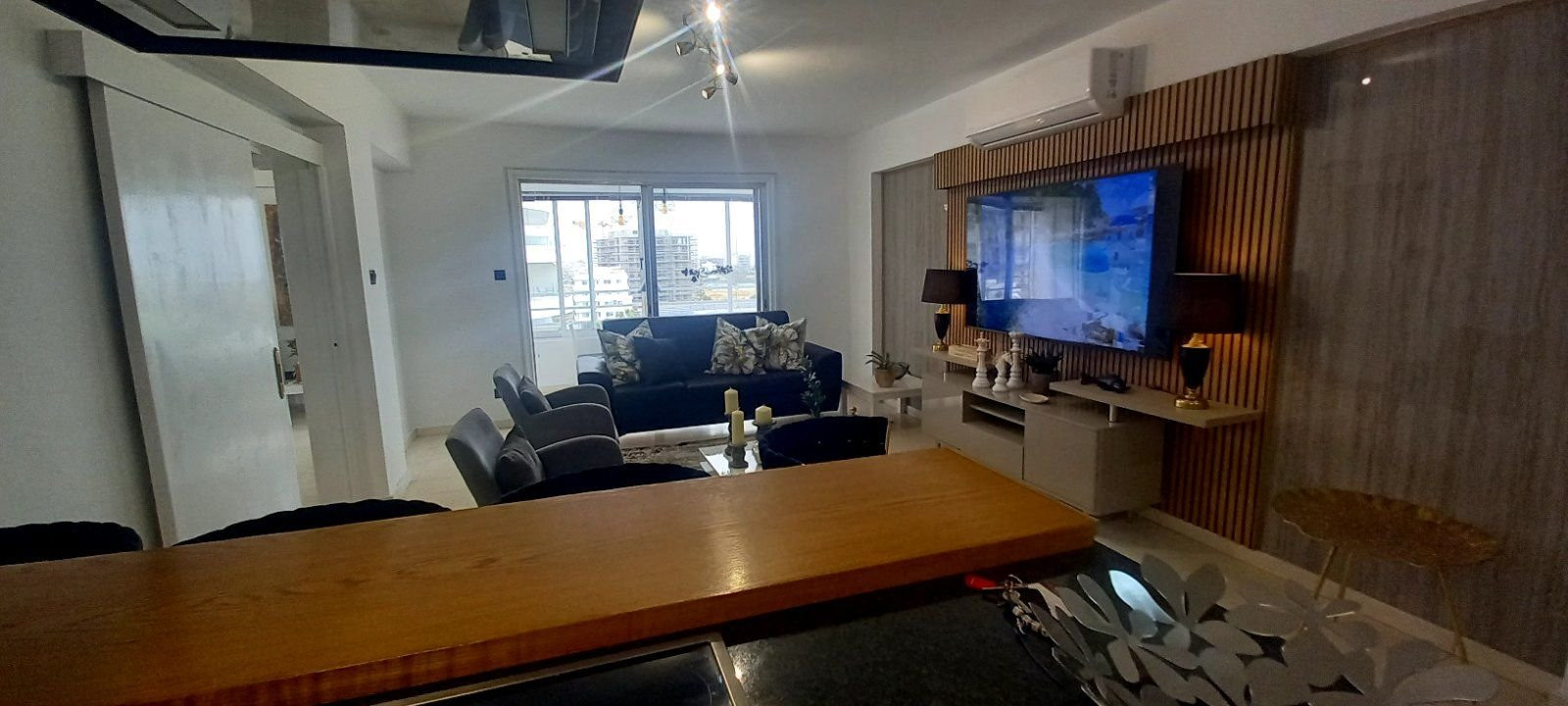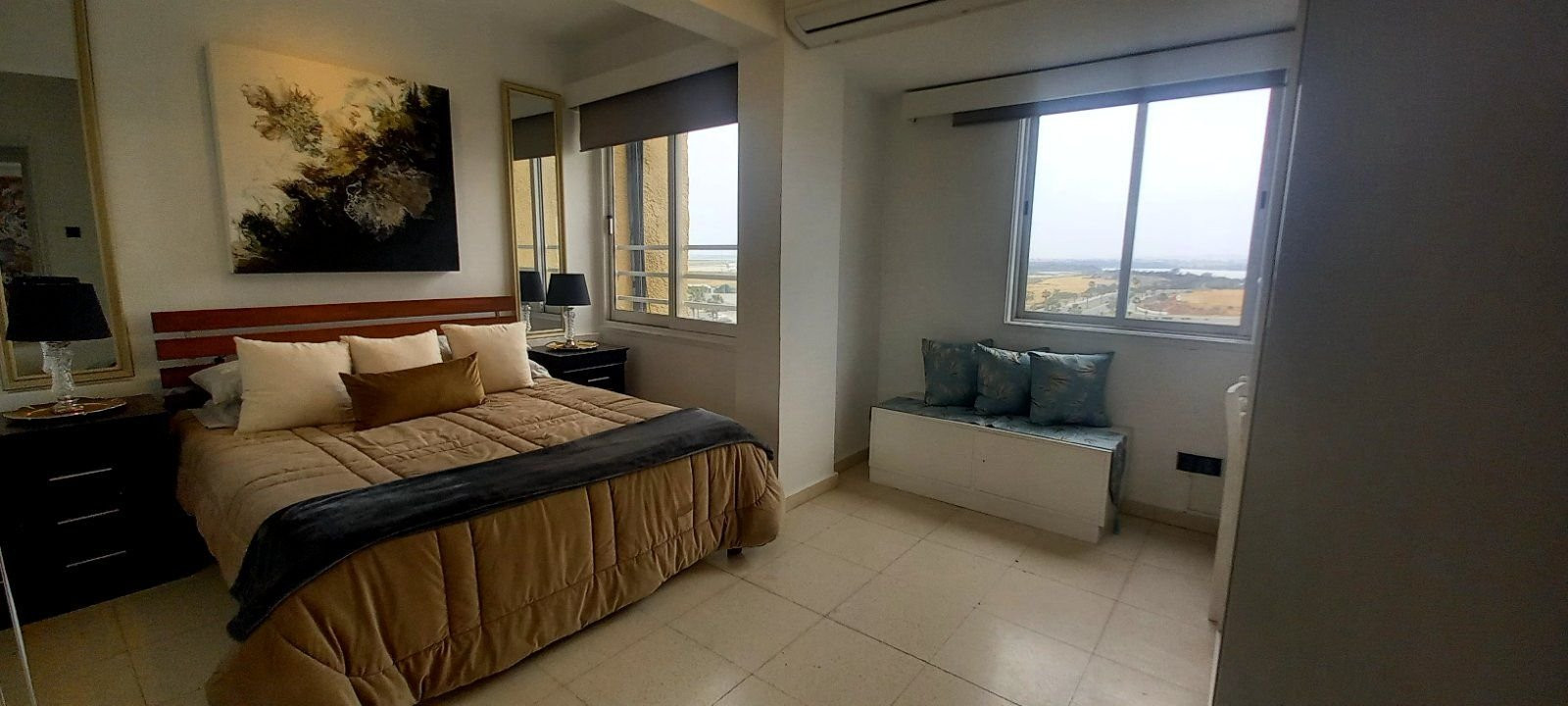 It is situated top floor apartment and it consists of 2 bedrooms, 1 bathroom, a kitchen and a living room. It is fully renovated with air-condition system. It also provides balcony with sea view and salt lake view.
