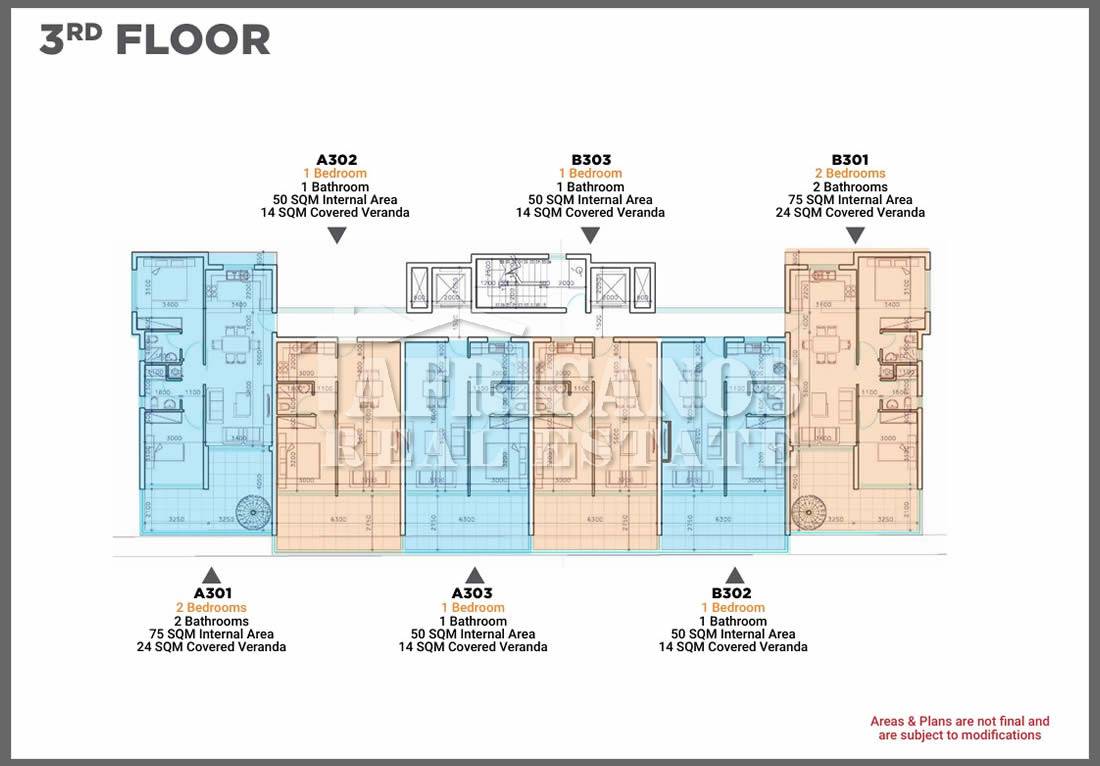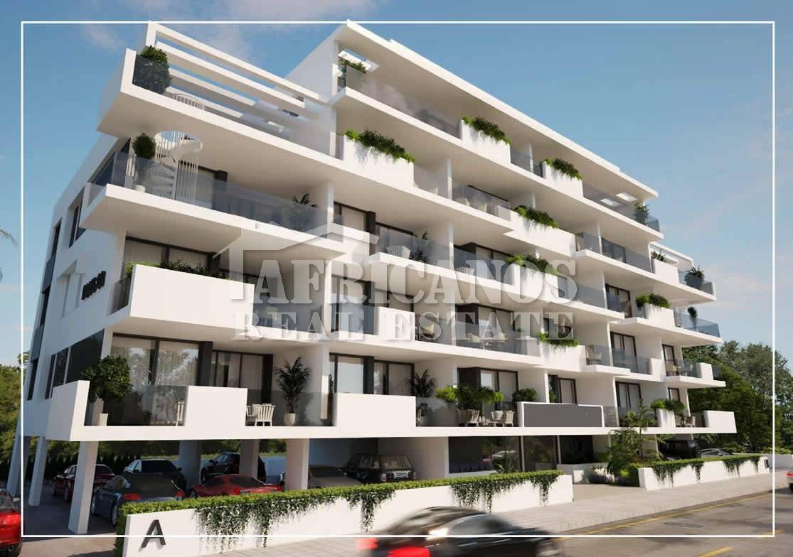 #Apartments for sale in Larnaca, Metro area. The properties consist of 2 bedrooms, open plan kitchen, living room, 1 shower, 1 shower en-suite, 2wc, 24sq.m. covered veranda, covered parking.