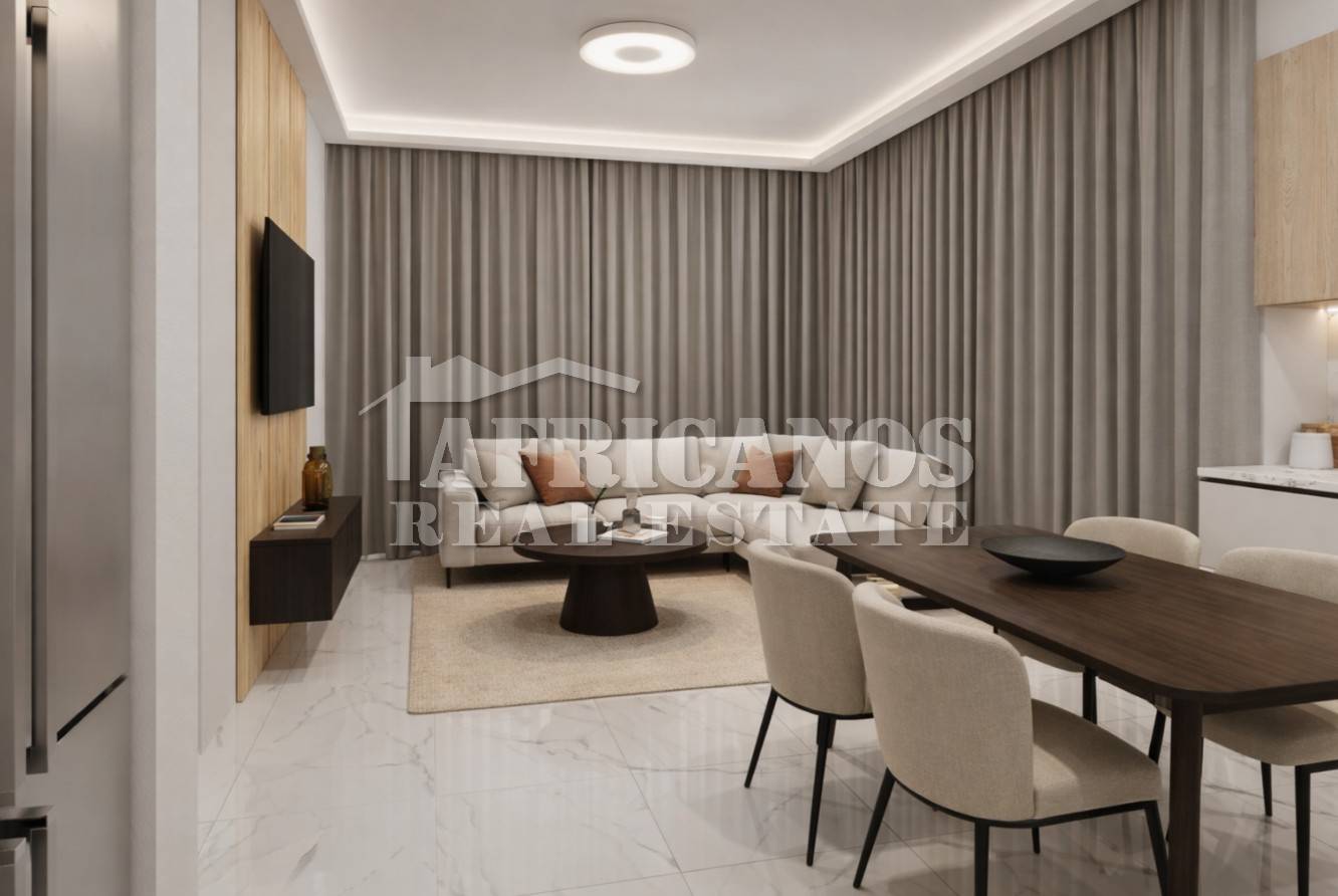#Apartment for sale in Larnaca, Macdonalds-Drive Through area. The property consists of 2 bedrooms, open plan kitchen, living room, 1 bath, 1 shower en-suite, 2wc, laundry bay, roof garden, security entrance, provision for concealed A/C units, decorative false ceiling design.