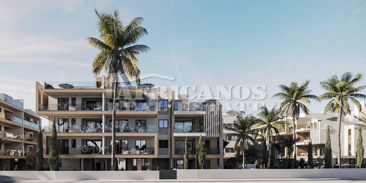 #Apartment for sale in Larnaca, Oroklini area. The property consists of 3 bedrooms, open plan kitchen, living room, 1 shower, 1 shower en-suite, 2wc, common pool, bbq area, gym, sauna, common showers and wc, covered parking, 24sq.m. covered verandas, covered parking, storage. Class A Energy Sufficiency.