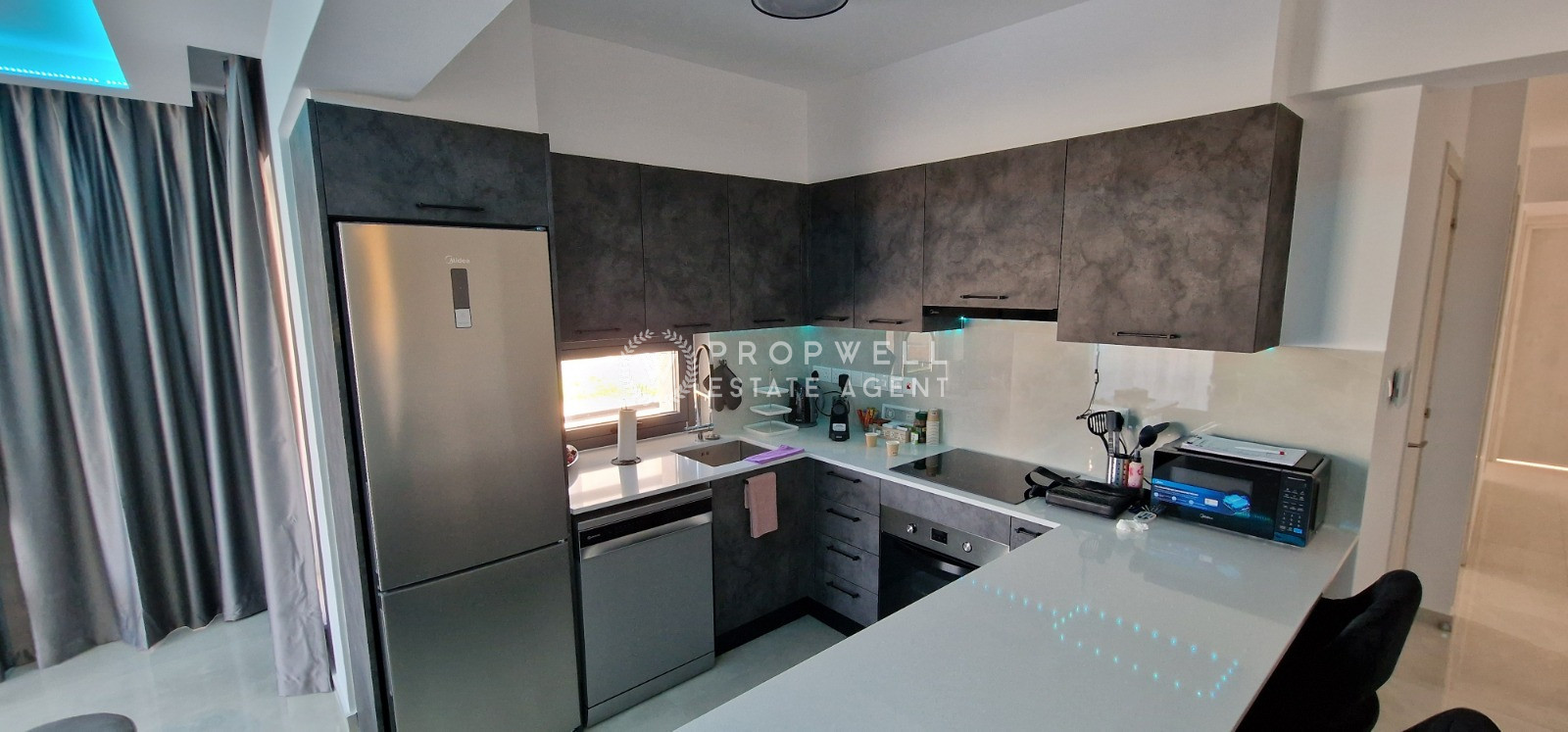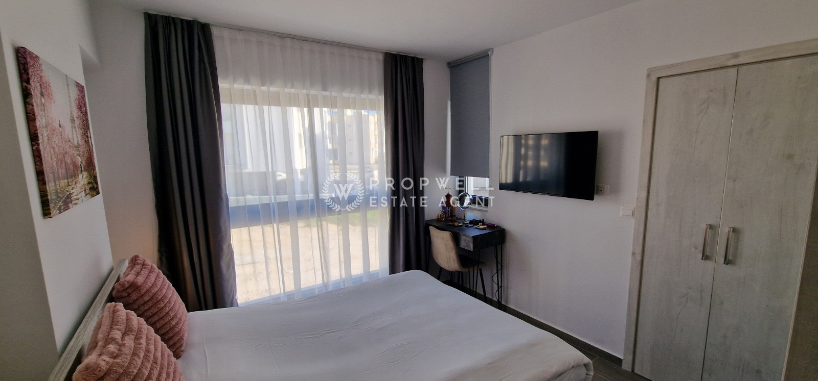 The apartment was built in 2025 and offers a contemporary design with quality finishes throughout. The living area is bright and airy, providing plenty of space for both relaxation and entertaining guests. The kitchen comes partially furnished, making it easy for you to move in and add your personal touch. Both bedrooms are well-sized, and the master bedroom benefits from an en-suite bathroom for added privacy.