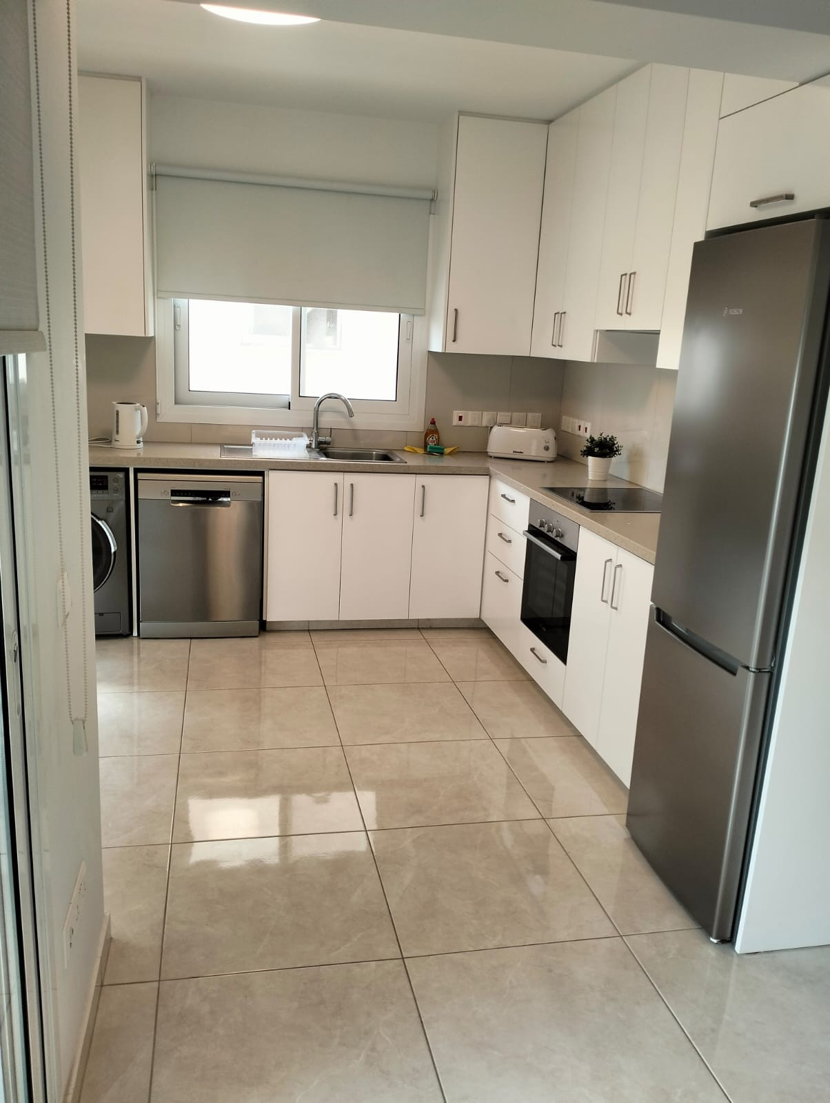 The apartment consists of two spacious bedrooms and one sleek, modern bathroom. Built in 2023, every detail feels fresh and up-to-date, from the kitchen appliances to the quality furnishings. Large windows fill the rooms with natural light, creating a bright and inviting environment.
