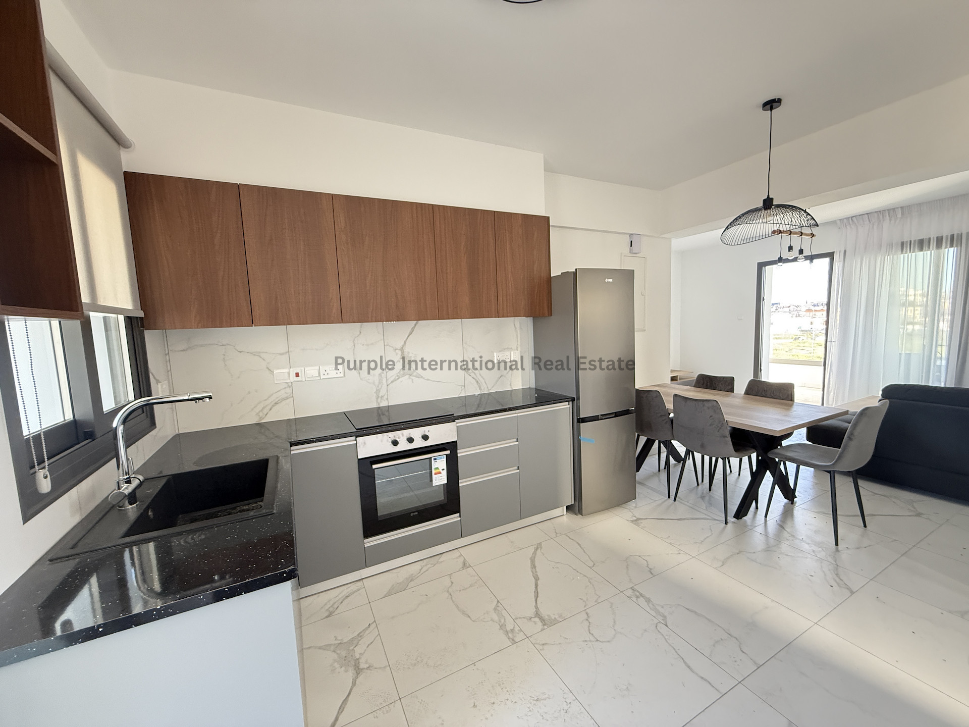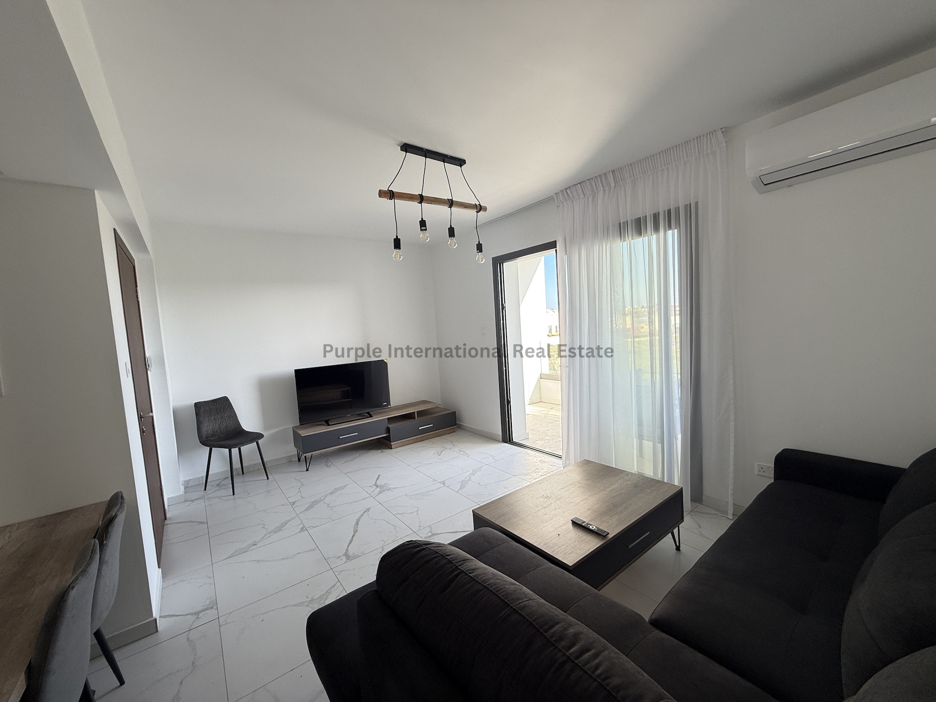 Step inside to a bright, open-plan living area with modern finishes throughout. The apartment is partially furnished, allowing you to easily add your personal touch. Large windows provide plenty of natural light, creating a warm and inviting atmosphere.