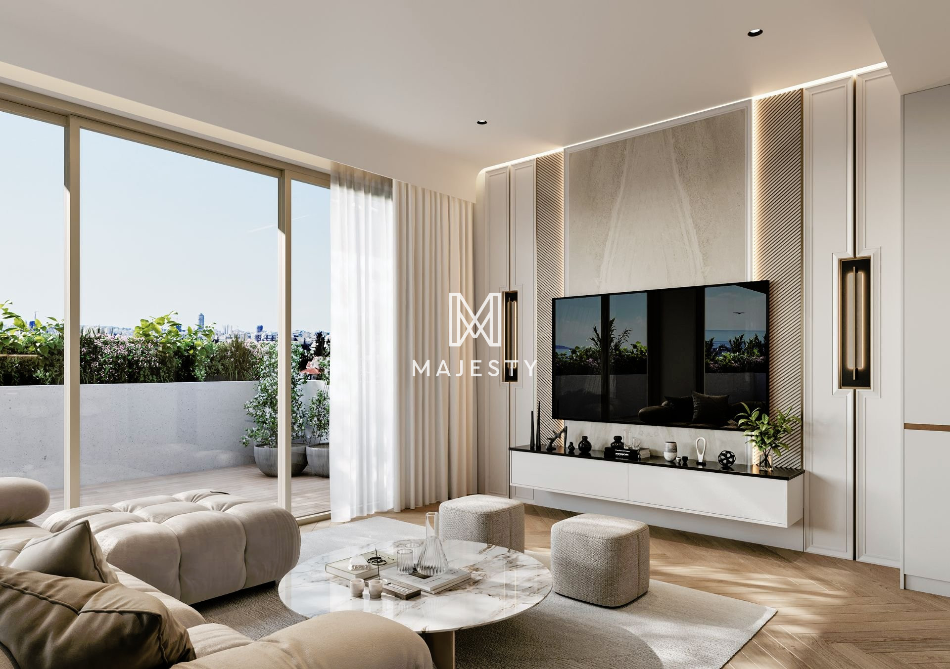 • Living room, kitchen, corridors and bathrooms have high quality ceramic tiles,