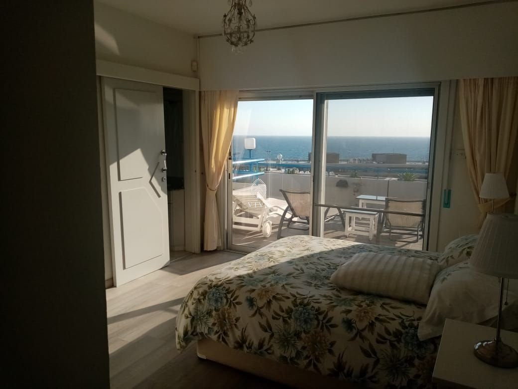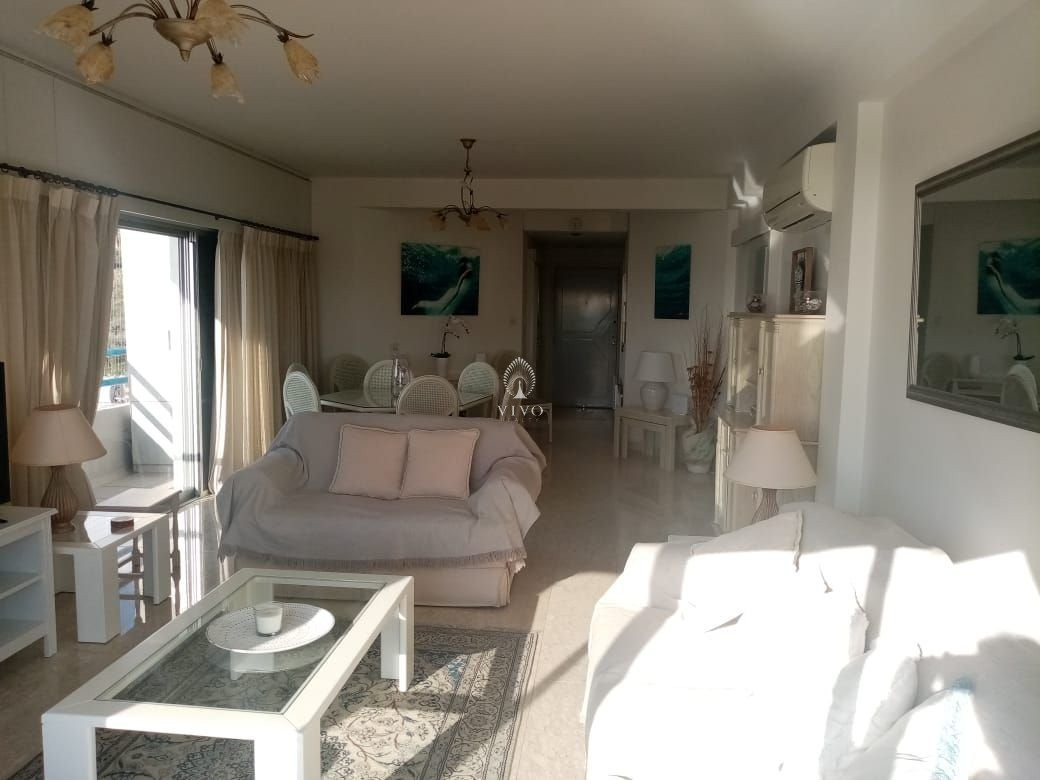 This beautiful three bedroom large seafront apartment is located in a private complex on Limassols famous beachfront of Agios Tychonas. Walking distance to all amenities, five star hotels, famous restaurants, bars & cafes, blue flag beaches and much more. Bright spacious areas with panoramic views from all three bedrooms, guest w/c, large sitting/ lounge dining area, separate kitchen with extra sitting space, family bathroom and a huge veranda with excellent views. Common swimming pool, garden space downstairs, storage room and two uncovered parking spaces. Fully furnished, a/c & c/h in all areas.