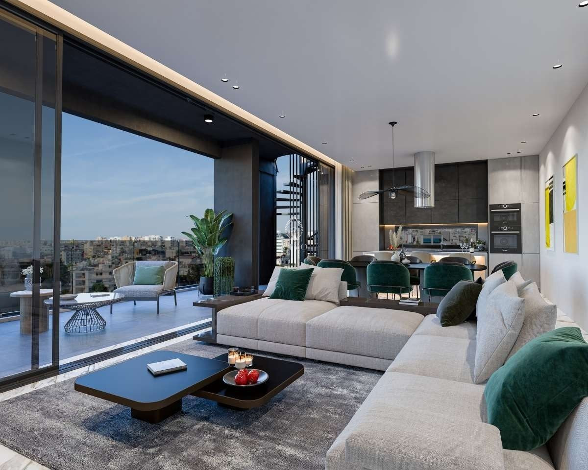Top floor apartment of 3 bedrooms with roof garden and total cover areas 269m2. Beautifully designed contemporary kitchen and bathrooms feature quality fixture and fittings. This residence blends elegance and style with the latest technology-innovated, sustainable features. Fabulously light and open plan areas provide plenty of space for families to share a relaxing time together. This project its on construction and expected delivery Summer of 2023