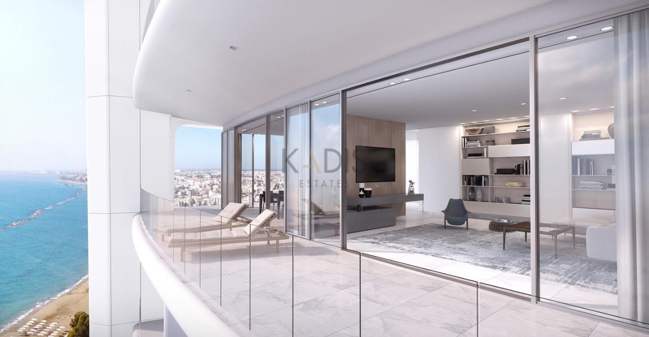 An exceptional high-floor residence in the tallest coastal tower in Cyprus, offering unobstructed 360° views of the sea, city and mountains. Located on the 29th floor, this apartment combines elegant design, comfort and prime beachfront living just 50 meters from the sea.