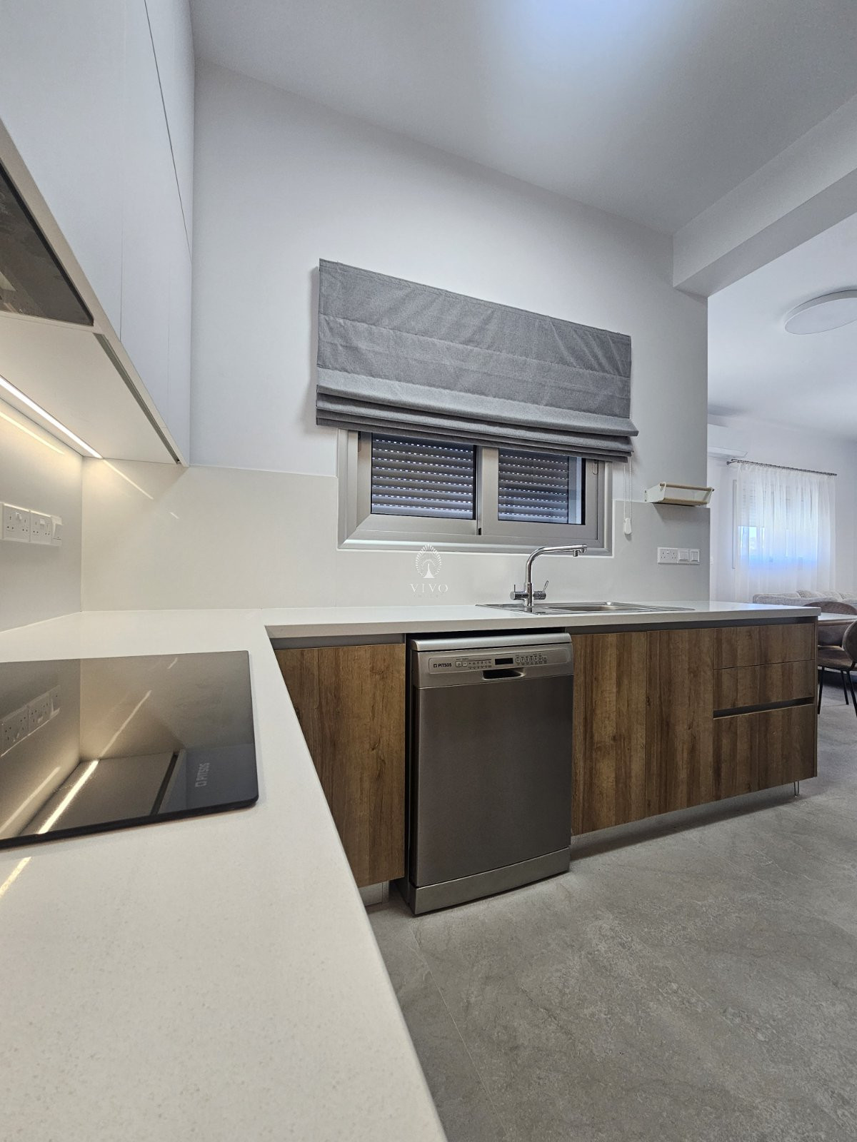 Located on the first floor of a well-maintained, low-rise residential building, the property features a bright and spacious open-plan living and dining area, seamlessly connected to a covered veranda—perfect for relaxation or entertaining. The fully equipped open-plan kitchen is both functional and modern.
