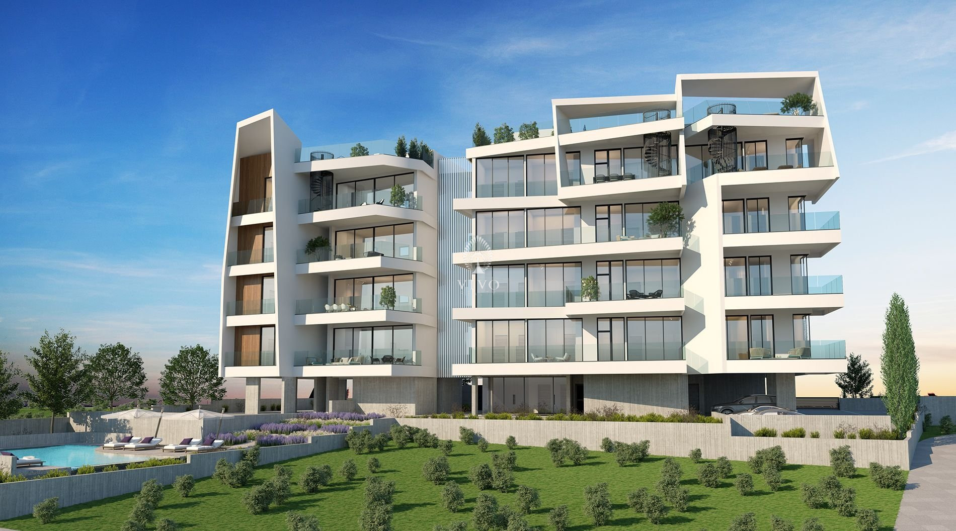 The apartment is consisted of three cozy bedrooms with plenty of natural light, an open plan living area designed both to embody elegance and comfort, a sizeable kitchen with enough space for happy family convergences, one storage room on the ground floor, one uncovered parking place, one covered veranda, communal swimming pool and landscaped gardens. Therefore this apartment thanks to the strategically placed floor to ceiling windows offer sweeping views of the city and coastline.