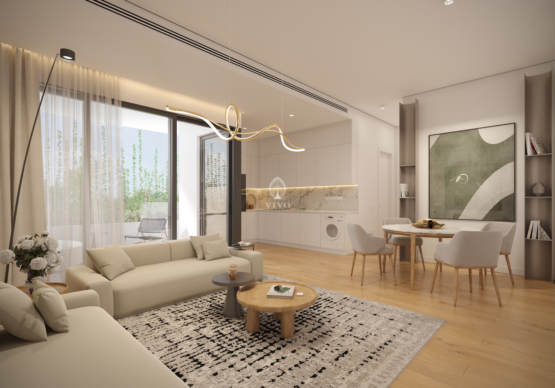 -VRV/VRF system, concealed ceiling air conditioners in the living room and wall mounted in bedrooms