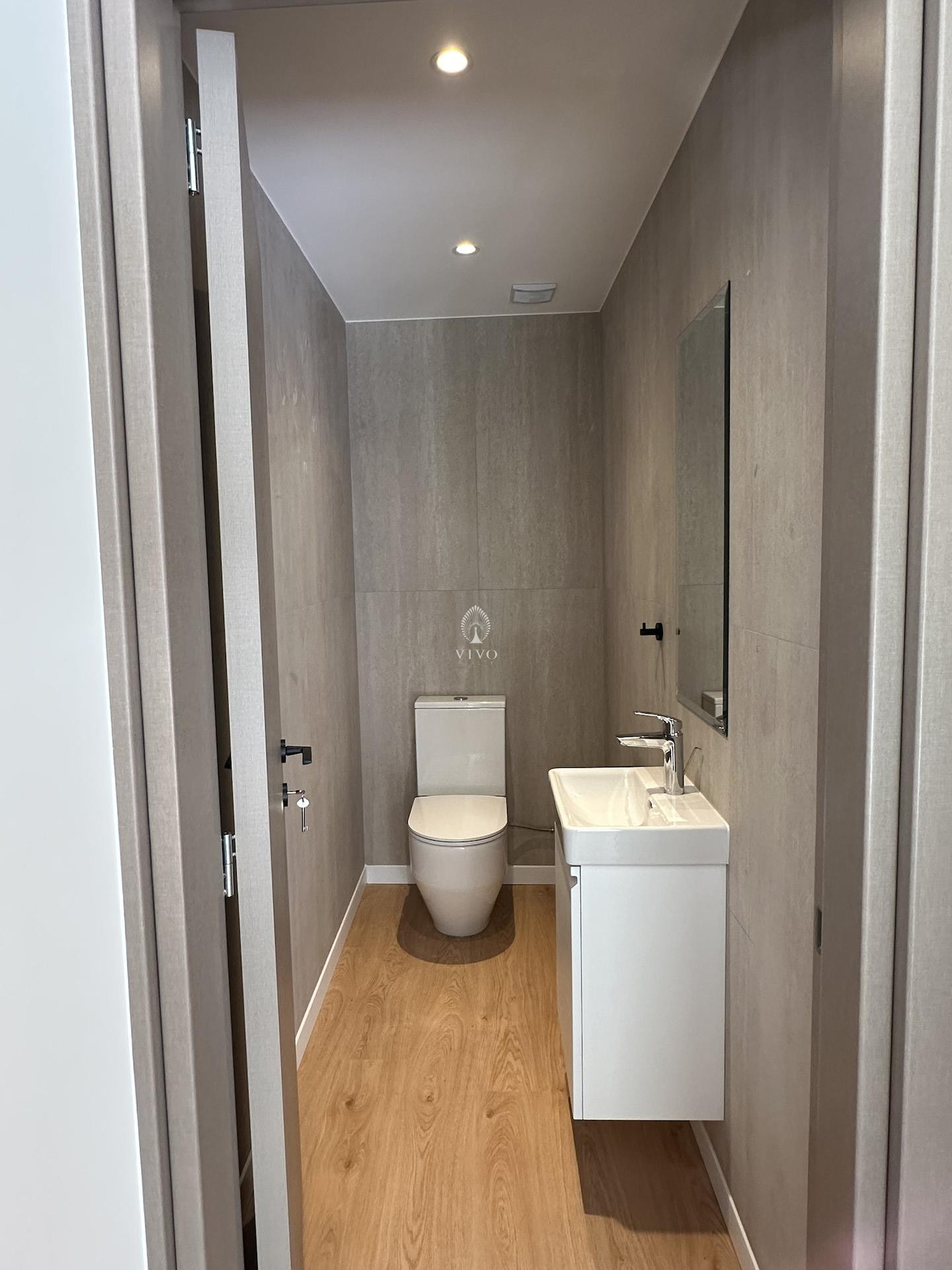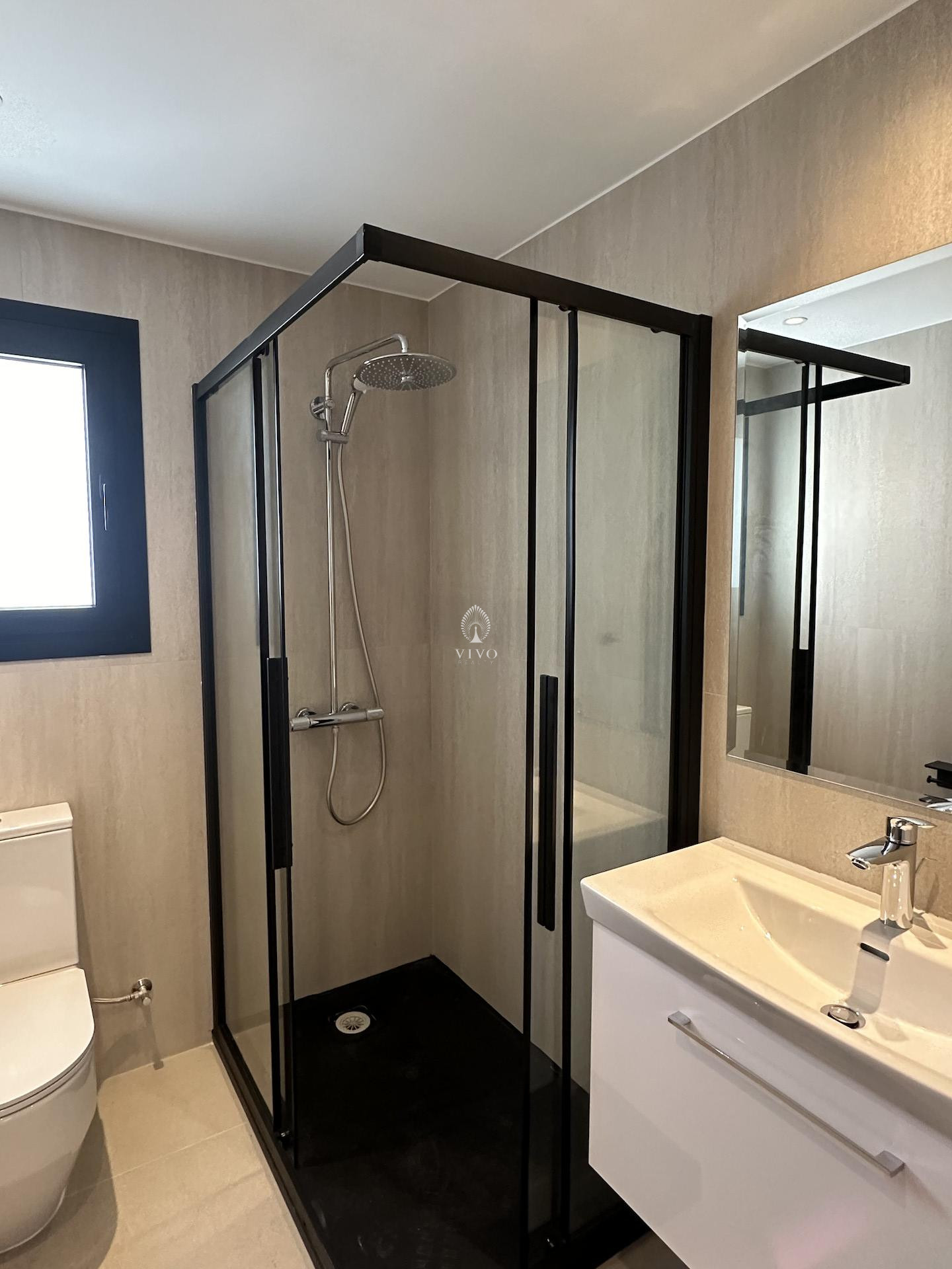 Part of a small residential building of just eight units in total, this flat offers a bright open plan kitchen with living area and large covered veranda, guest w/c, the two bedrooms and main bathroom. High quality materials throughout, installation of a/c units, electric heating panels, photovoltaic system, electric shutters in the bedrooms and more.