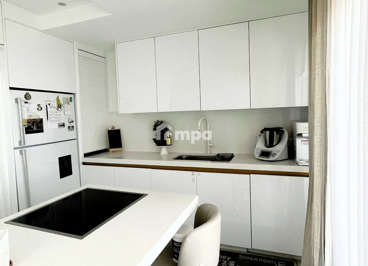 It has an open plan sitting-living area/kitchen, 2 spacious bedrooms (one of them en-suite with walk in closet and a veranda with view in green area!