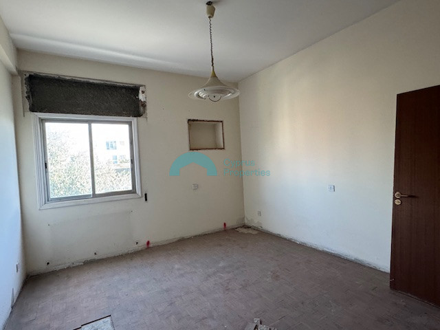 A spacious apartment in Strovolos, offering 155 m² of comfortable living space. This property is located on the firsrt floor of a three-story building. It requires and extenssive renovation. With three bedrooms and two bathrooms, this property is ideal for families or anyone needing extra space. Originally built in 1982. The building renovation began in September 2025 and the costs of the renovation that is allocated to the apartment has already been paid.