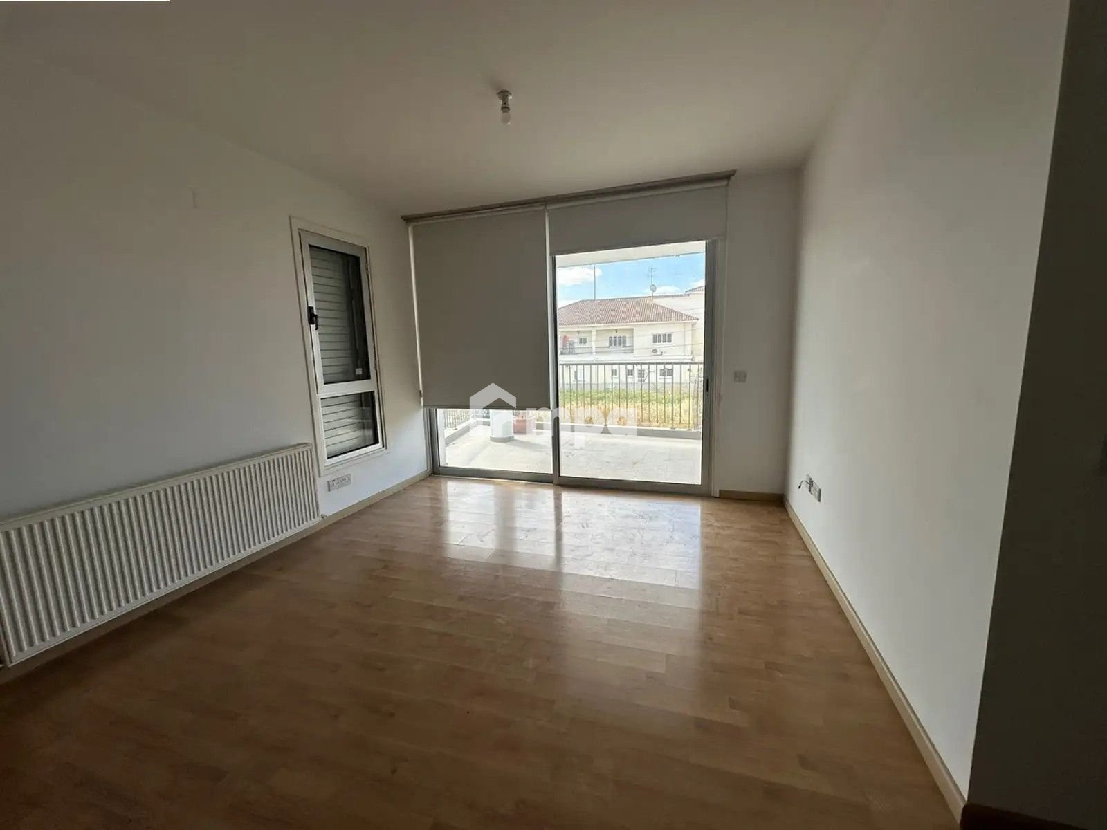 The apartment is offered unfurnished with all electrical appliances, A/C units in all the rooms, Central Heating, a water pressure system, a solar water heater, and one covered parking spot.