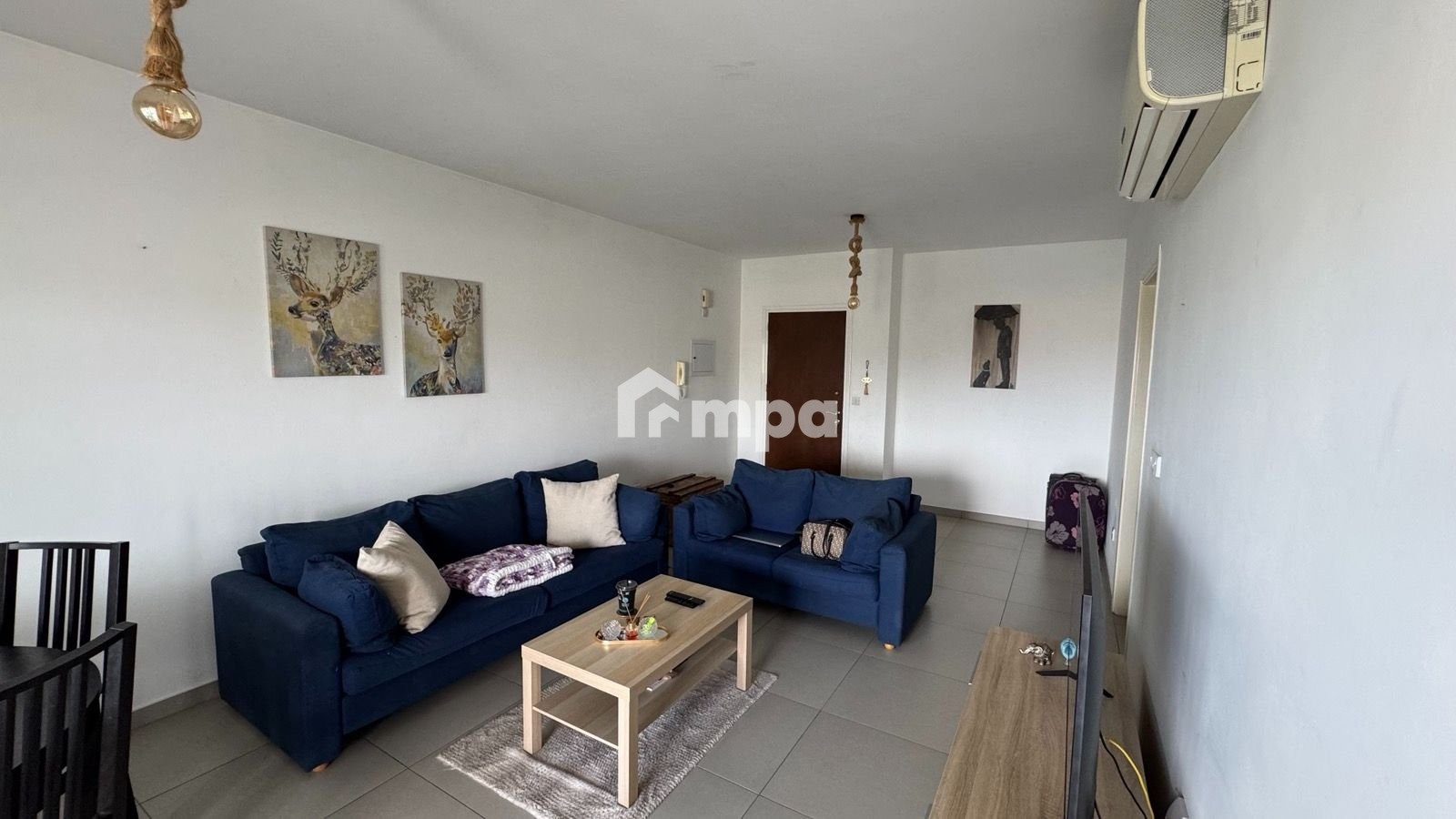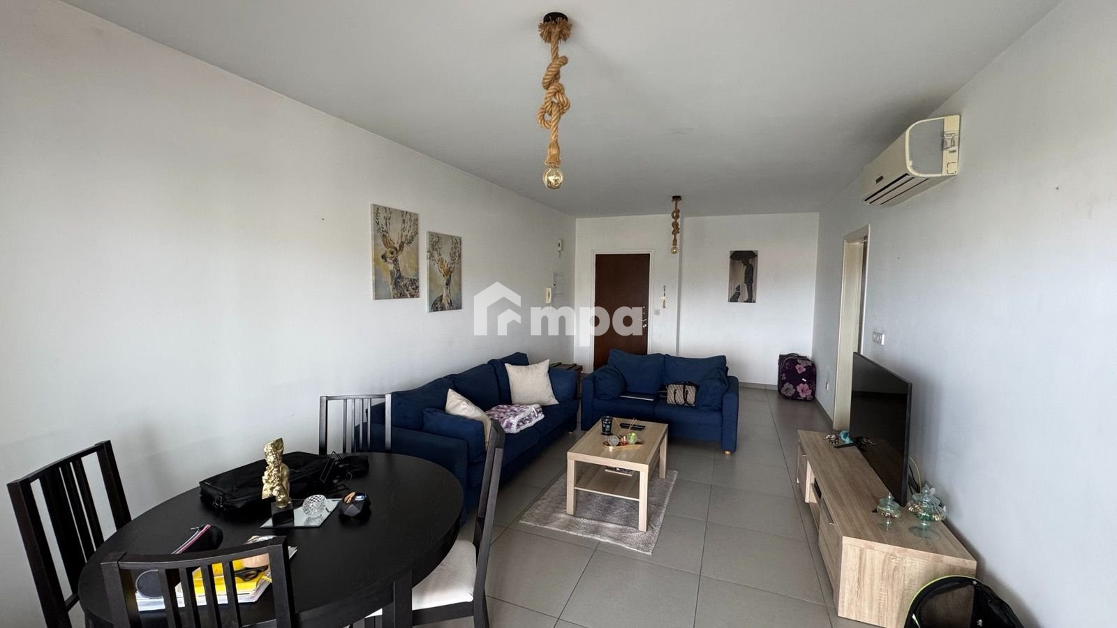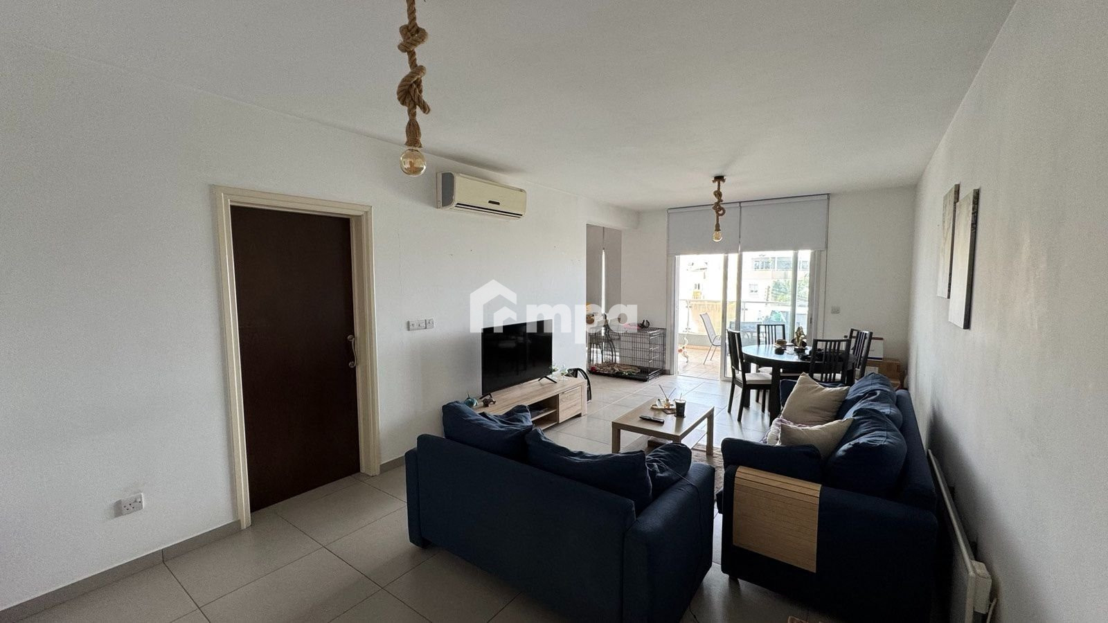 The apartment is offered fully furnished, with brand-new A/C units in all the rooms, a water pressure system, solar heating, two covered parking spots, and a storage room.