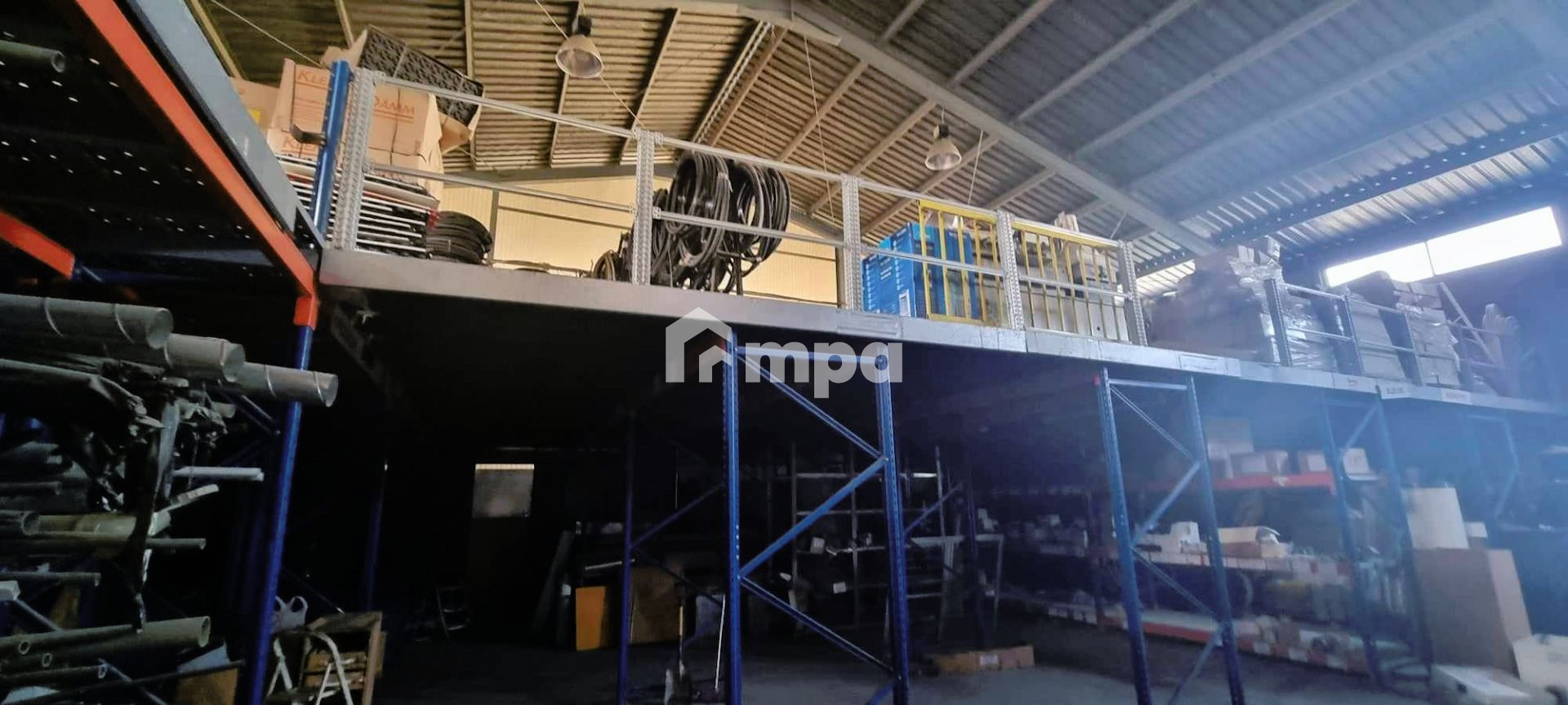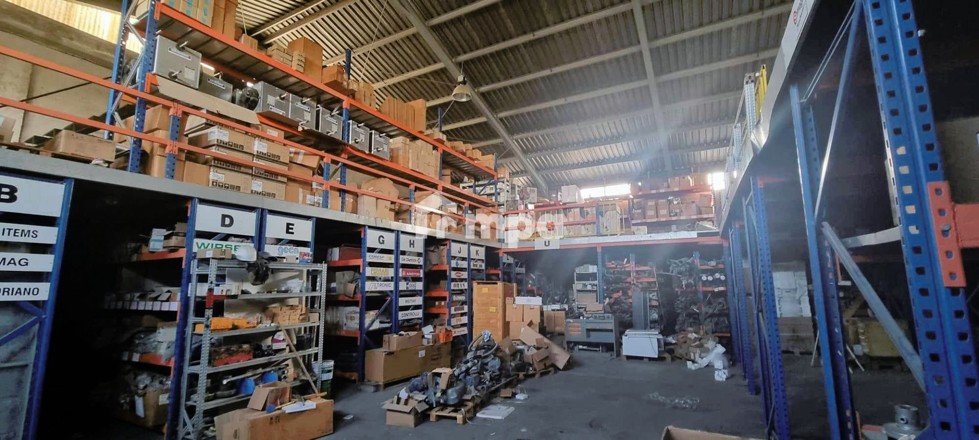 3) Two warehouses with lofts, equipped with Italian boring type metal shelves.