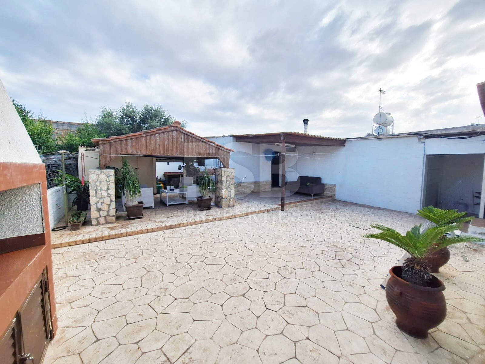 •Outdoor Space: Enjoy the courtyard with a wooden pergola, perfect for summer evening barbecues, and a spacious kitchenette with an open fireplace.