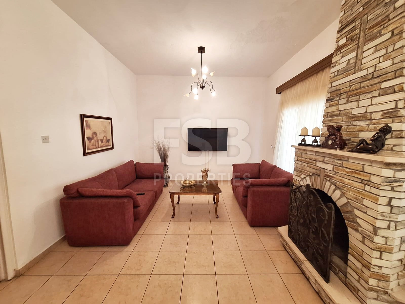 •Spacious Living Room: Enter through the welcoming entrance into a generous family-sized living room featuring an open brick fireplace.