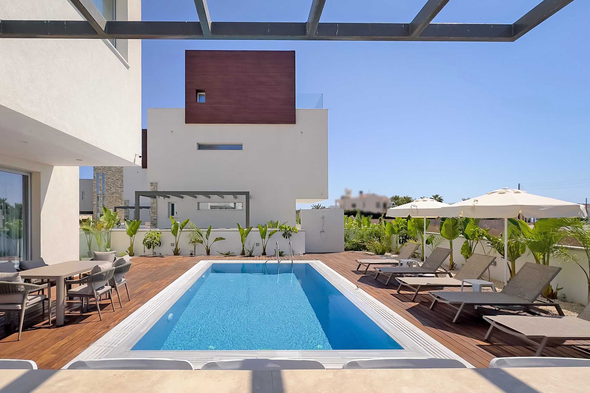 This 4 bedroom villa offers a cozy and convenient living space, perfectly situated in Ayia Napa with easy access to the town’s attractions and the beach. The gated development with only eight villas ensures a sense of exclusivity and privacy. The layout is well-planned, with living areas and a kitchen on the ground floor, bedrooms on the first floor, and a lower level reserved for recreational space, an additional bedroom, and a jacuzzi. The rooftop garden and private pool with a barbecue area offer lovely outdoor spaces for relaxation and entertainment. The inclusion of furniture and electrical appliances means you can move in comfortably without the hassle of furnishing the home yourself. Overall, this villa sounds like a delightful retreat in a vibrant location.