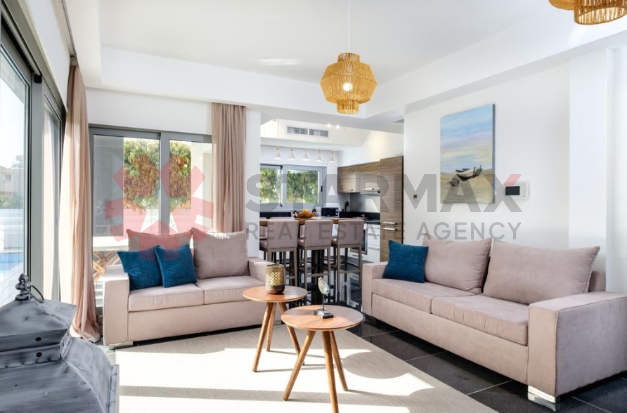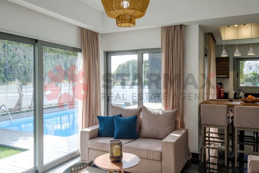 Luxury 3-Bedroom Detached Villa in Exclusive Coastal CommunityFully furnished, this 155 m² detached villa sits on a 293 m² plot in a quiet, gated community of just 10 villas. Featuring 3 bedrooms, 1 bathroom, 1 en-suite shower, and 3 WCs, the villa offers an open-plan kitchen, living & dining area, covered verandas, and balconies. Full air conditioning ensures year-round comfort.Enjoy a private swimming pool, BBQ area, landscaped garden, covered parking, attic/loft, and storage room. Pets allowed. Built in 2010, designed for modern luxury living.Just a 2-minute walk to Pervolia Blue Flag beach and 10 minutes from Larnaka Airport.