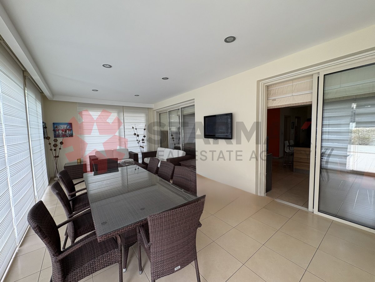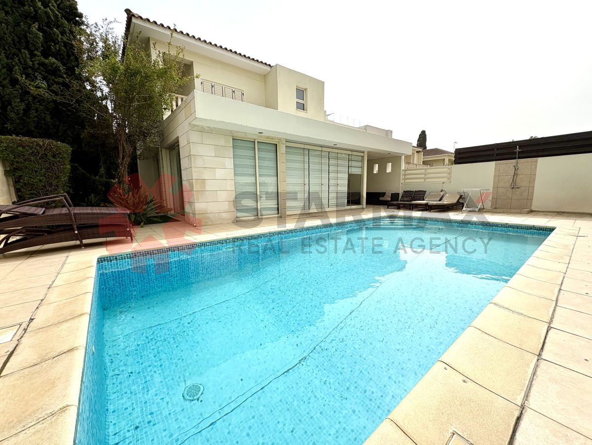 Set within one of the most prestigious and exclusive resort complexes off Dhekelia Road, this exceptional five-bedroom detached villa with private pool is offered for sale in a highly sought-after location, just third line from the beach.Occupying a desirable 400m² corner plot, the property enjoys both privacy and space, while benefitting from a covered parking area and exclusive access via a private residents’ pathway leading directly to the beach, only a stone’s throw away.The ground floor comprises a spacious open-plan kitchen, dining and living area, designed for modern family living and entertaining. This inviting space flows seamlessly into a bright conservatory with sliding doors, opening directly onto the private pool area and creating the perfect indoor-outdoor lifestyle.Externally, the villa offers a beautifully arranged outdoor area with a private swimming pool, barbecue area and outdoor shower, ideal for relaxing and entertaining throughout the year.Also on the ground floor are three well-proportioned bedrooms and two bathrooms.Upstairs, the property features the impressive master bedroom with en-suite shower room, together with a further bedroom and an additional family bathroom. Both upstairs bedrooms share access to a spacious veranda overlooking the surrounding area.Located within one of Larnaca’s most exclusive beachside developments, this superb villa presents a rare opportunity to acquire a luxurious permanent residence or holiday home in an unrivalled setting.