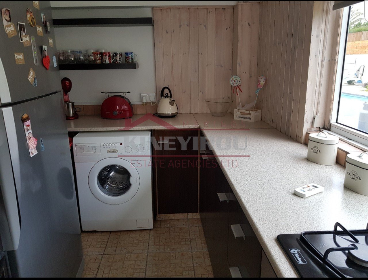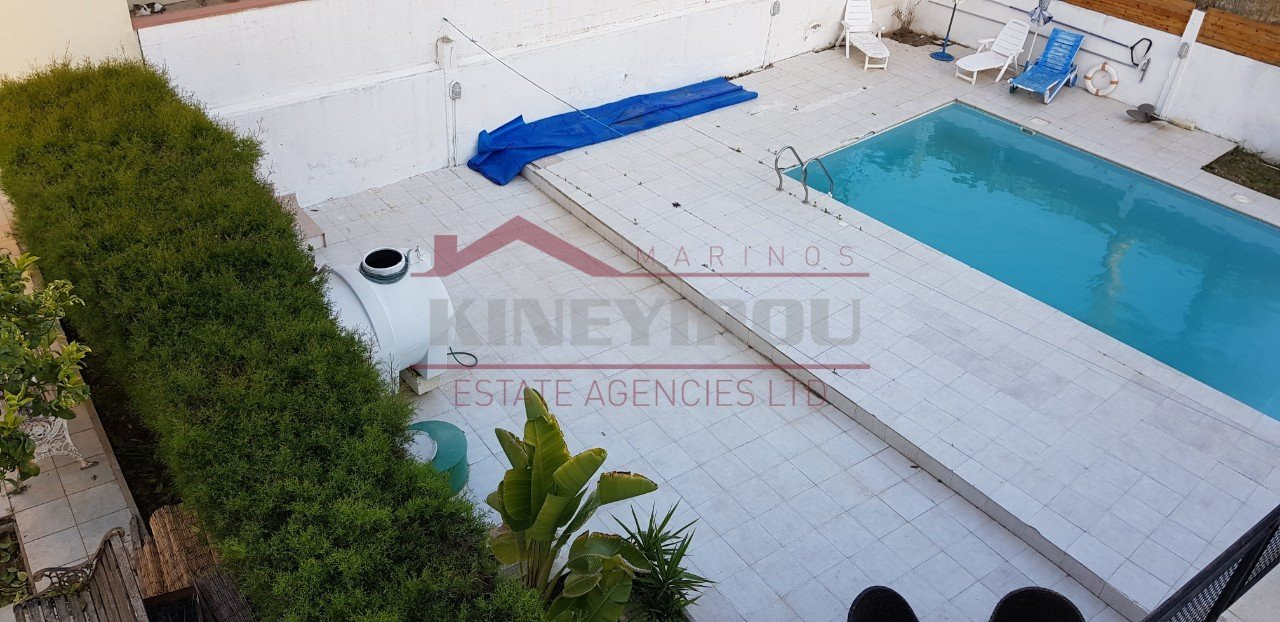 Luxurious 5 bedroom house for sale about 380 sqm. build in 770sqm. plot, with a swimming pool , situated in the peacful Dekhelia area, some minutes away from Finikoudes seaside and the Larnaca center. This independent house has 5 large bedrooms and has a sauna and a title deed.There is a guest toilet and an open plan modern kitchen and all electrical appliances are included , air conditions and central heating.