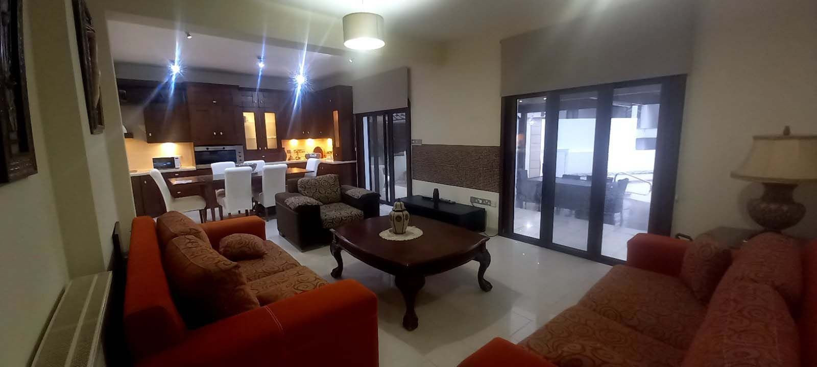 It is situated in very attractive quiet area with many amenities around such us schools, supermarkets, bakeries, banks, cafes and restaurants. It is 10-15 minutes driving away to the city center and is 5-10 minute driving away from Dekelia beach. It has very easy access to the main roads of the town and to the motorway.