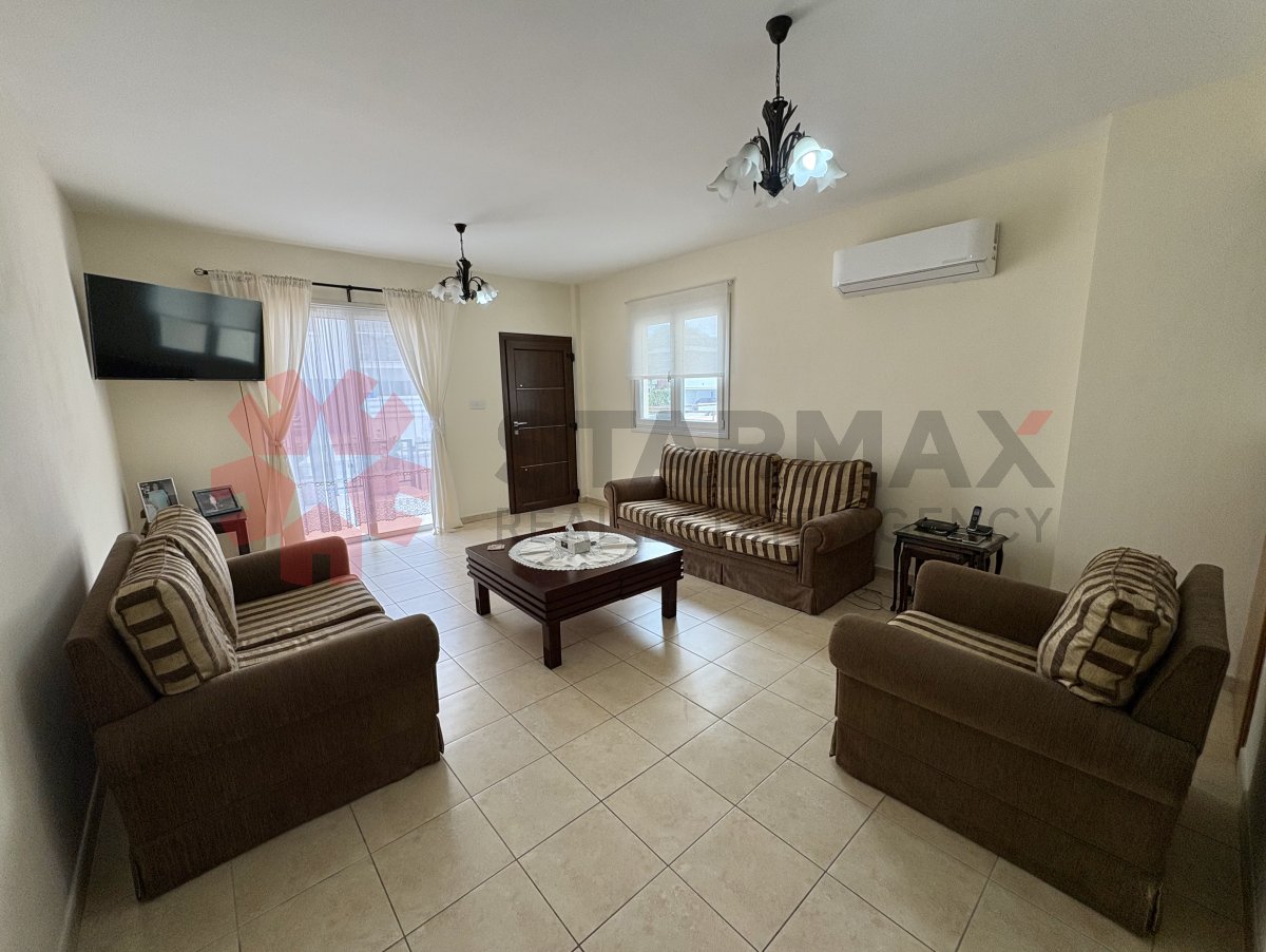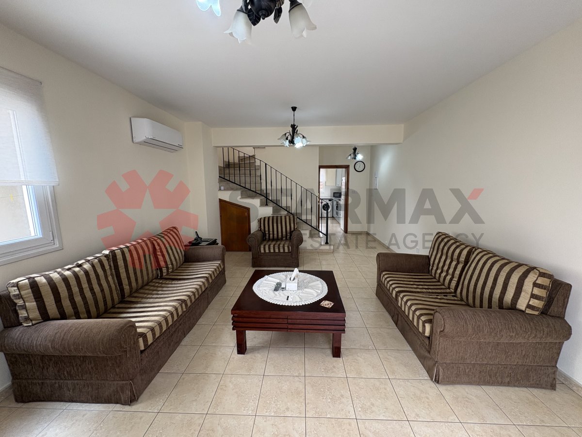 Ideally situated close to all necessary amenities, this two-bedroom semi-detached house enjoys a convenient location within walking distance to the gym and physiotherapist, and just moments from restaurants, bars, supermarkets, coffee shops, banks, pharmacies, and schools. The beach is only a three minute drive away, while the highway can be reached in two minutes, providing easy access to Ayia Napa within approximately 15 minutes and Larnaca centre in around 10 minutes.The property has been partly renovated and includes a new kitchen, new air conditioning, newly decorated interiors, some upgraded windows, and a brand-new front door. Provisions for central heating are also in place.The ground floor features a guest toilet, while upstairs offers a family bathroom and two large bedrooms, each benefiting from its own private balcony. The house also includes covered parking and is offered fully furnished.