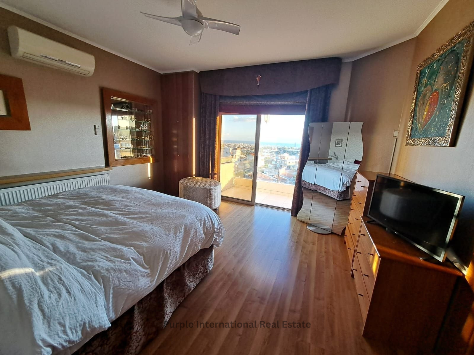 Master bedroom with stunning sea views, walk-in closet, & en-suite bathroom