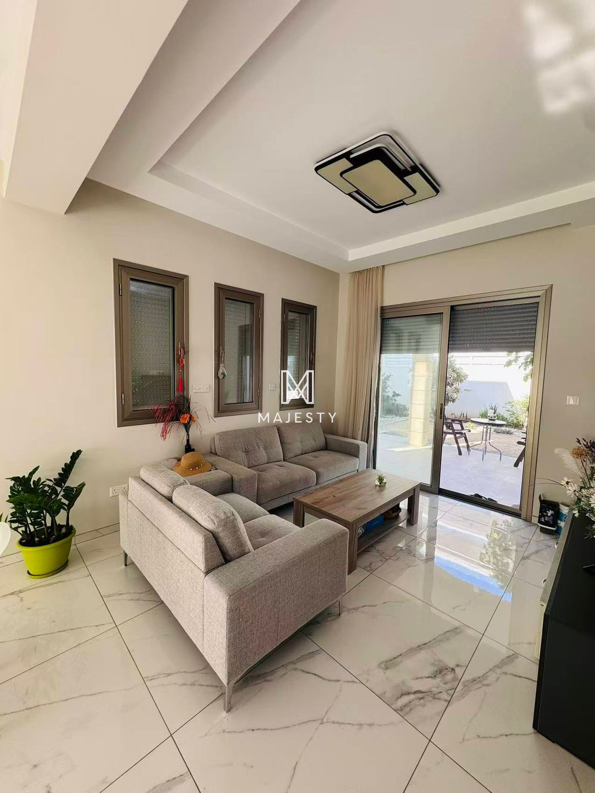 A key-ready villa for rent in Agios Athanasios, featuring four bedrooms, four modern bathrooms, and stylish, comfortable interiors. Located in a secure gated complex, it offers access to a large communal pool, gym, and impressive city views. The area provides a peaceful setting with excellent infrastructure, nearby amenities, schools, and convenient access to the highway and city center.