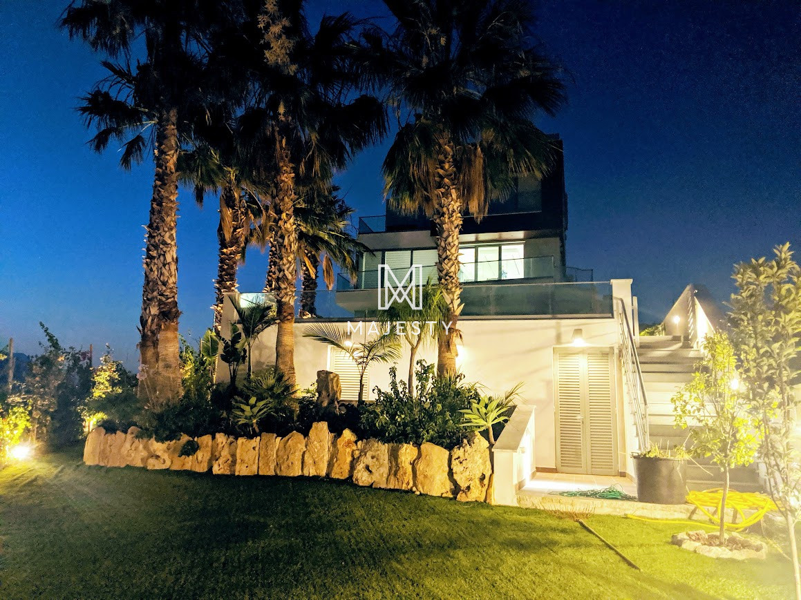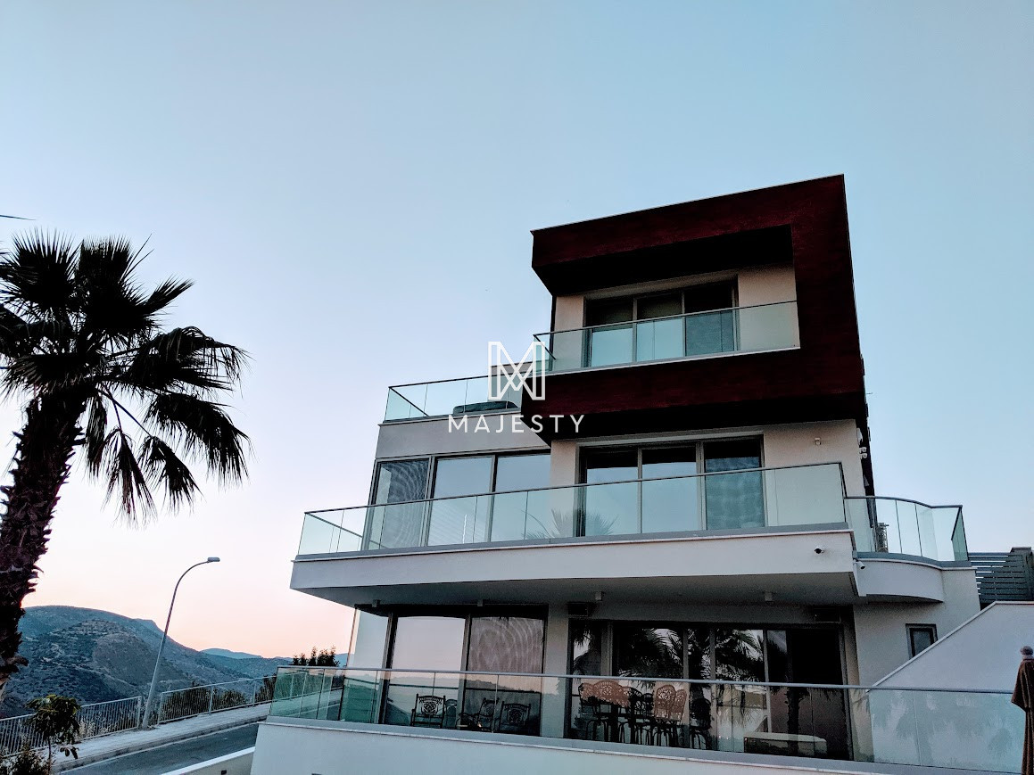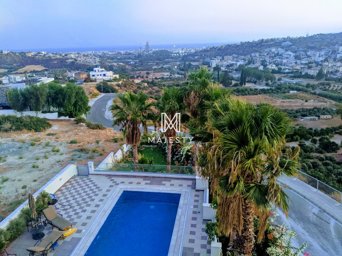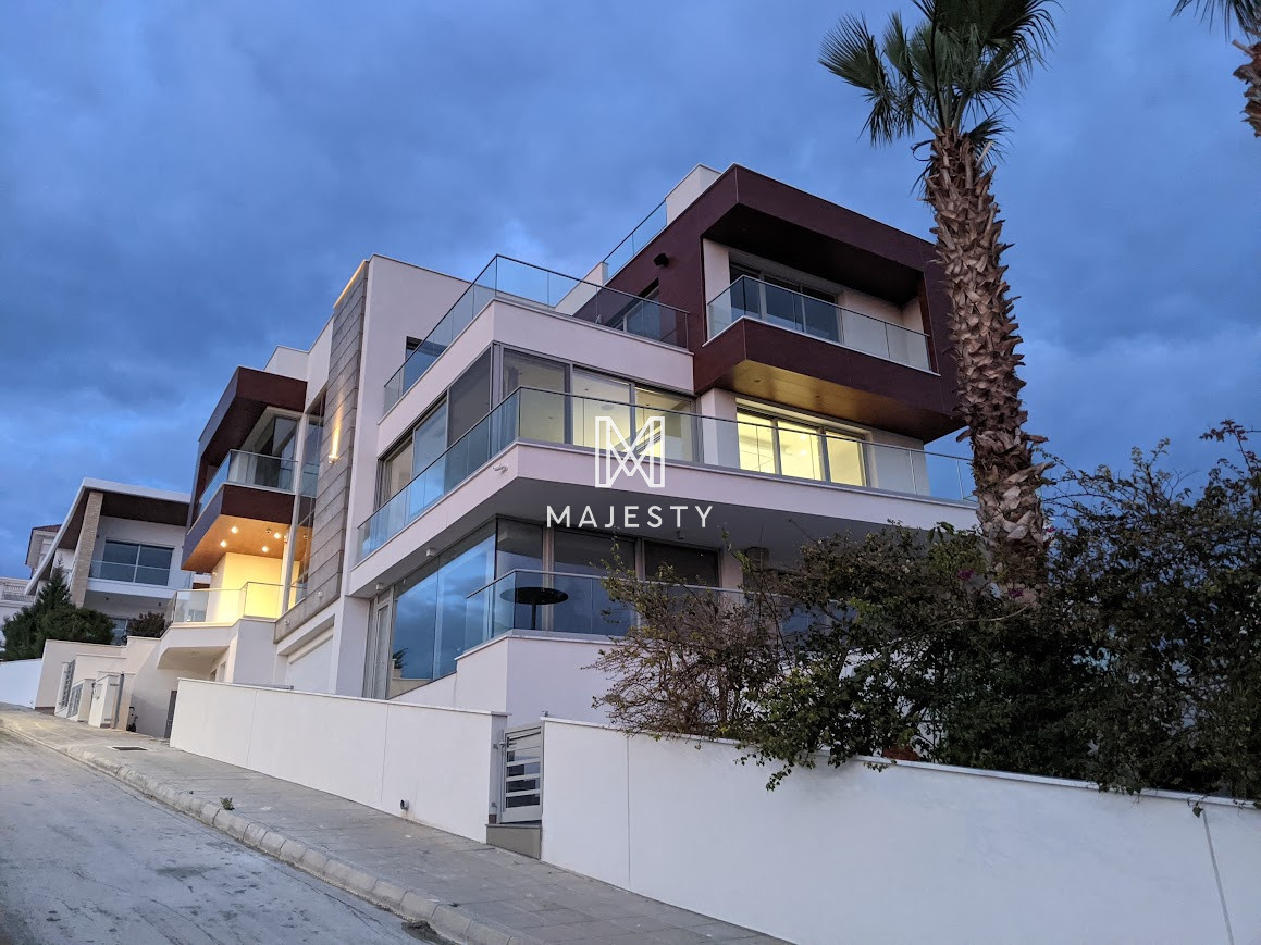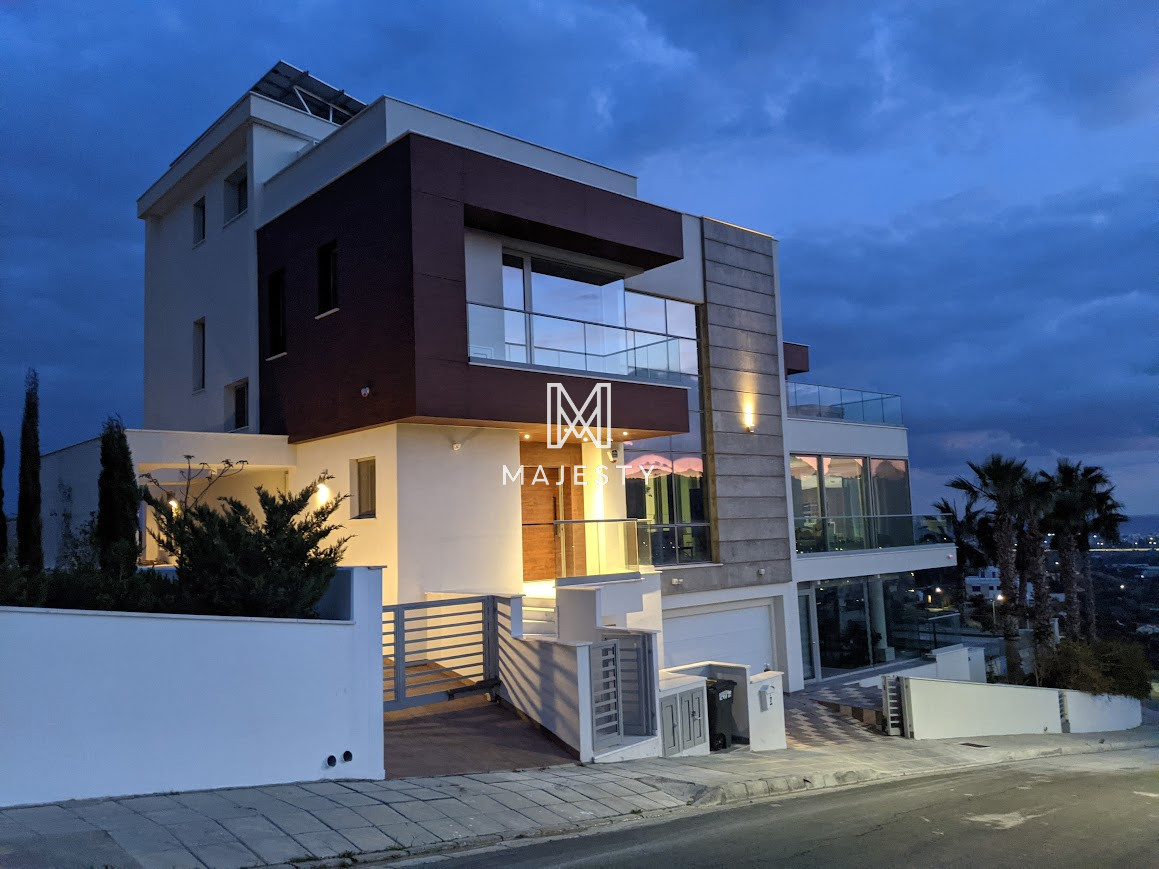 A modern luxury villa for sale in Germasogeia, built in 2019, offering 850 m² of living space on a large plot. It features 5 bedrooms, 5 bathrooms, bright open-plan areas with panoramic city, mountain, and sea views, underfloor heating, and a private jacuzzi. Outside, there is a large swimming pool, and the property combines a peaceful location with easy highway access—ideal for comfortable, upscale family living.