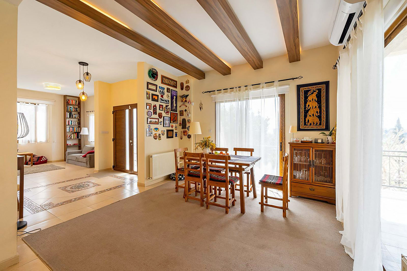 This elegant Mediterranean style 4 bedroom, 4 bathroom villa is located in the quiet and private residential area of Moutayiaka, Limassol. Boasting 270 m² of internal space, it features an open plan kitchen, dining, and living area with a fireplace, three bedrooms including a master suite with walk in dressing room and en suite, plus a guest bedroom and gym in the basement. The villa sits on a 620 m² plot with a swimming pool, offering sea views, and enjoys a covered veranda and additional outdoor space for relaxation. Just 1.5 km from the beach and minutes from the highway, shops, and city center, this property combines comfort, convenience, and investment potential with a title deed.