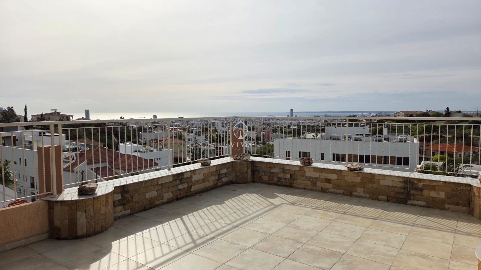 Large three bedroom upper floor house with roof garden and unobstructed panoramic sea views.