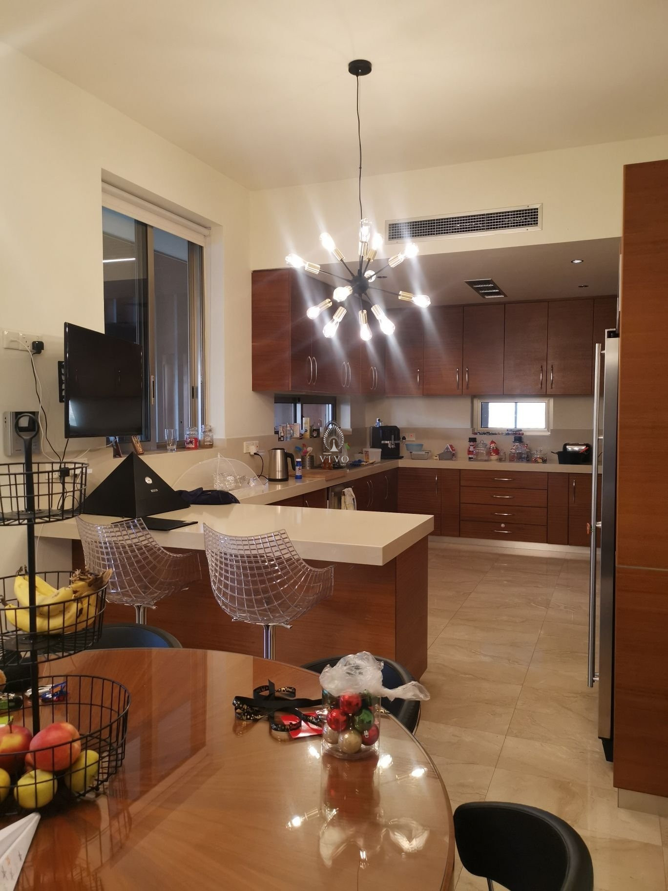 Luxurious villa in Opalia hills of 3+1 bedrooms in a plot of 970m2 and 290sqm internal areas. This villa was designed to enjoy semi-open plan living and enjoy panoramic views from every room. In upper level are 3 spacious bedrooms, one en-suite with a shower, main bathroom and addition forth bedroom en suite guest or staff room is on the ground level with private entry. All bedrooms enjoy panoramic views and have fitted wardrobes and solid wood parquet flooring throughout the house.