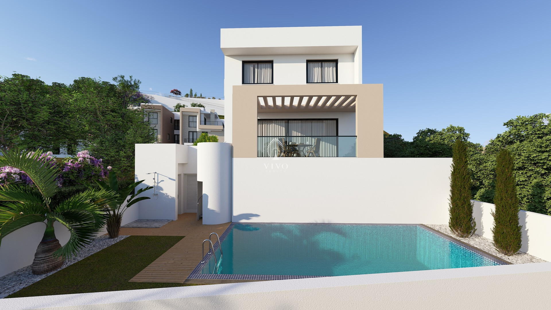 Enjoy stunning views of the picturesque village and surrounding countryside from your private outdoor space. Palodia is known for its peaceful atmosphere and traditional charm, offering a relaxed lifestyle while still being conveniently close to local and private schools, amenities, and city connections.