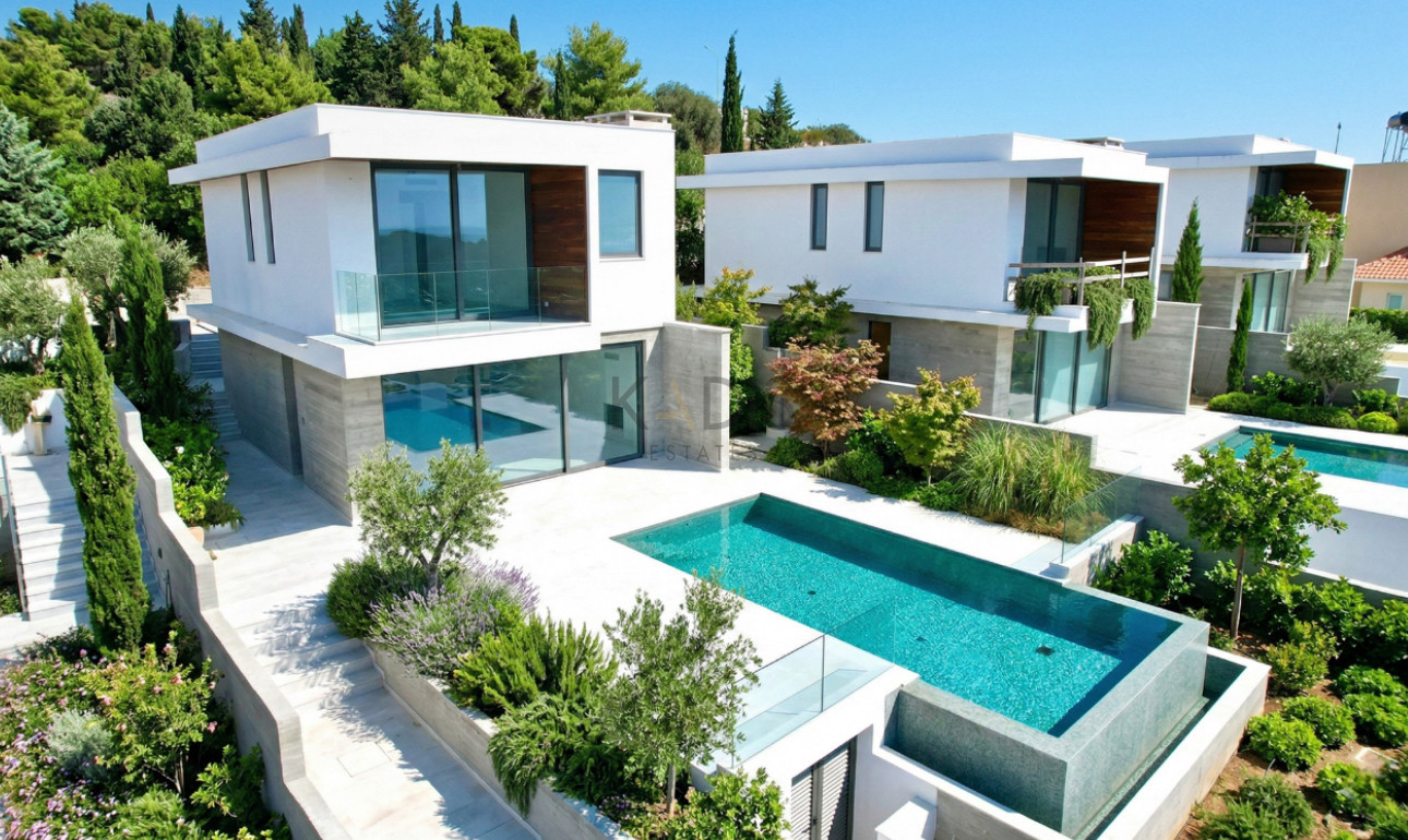Brand new, ready-to-move-in 3-bedroom villa for sale in an exclusive residential complex in Agios Tychonas, just 900 meters from the sea, offering beautiful views of the sea, the city and the mountains.