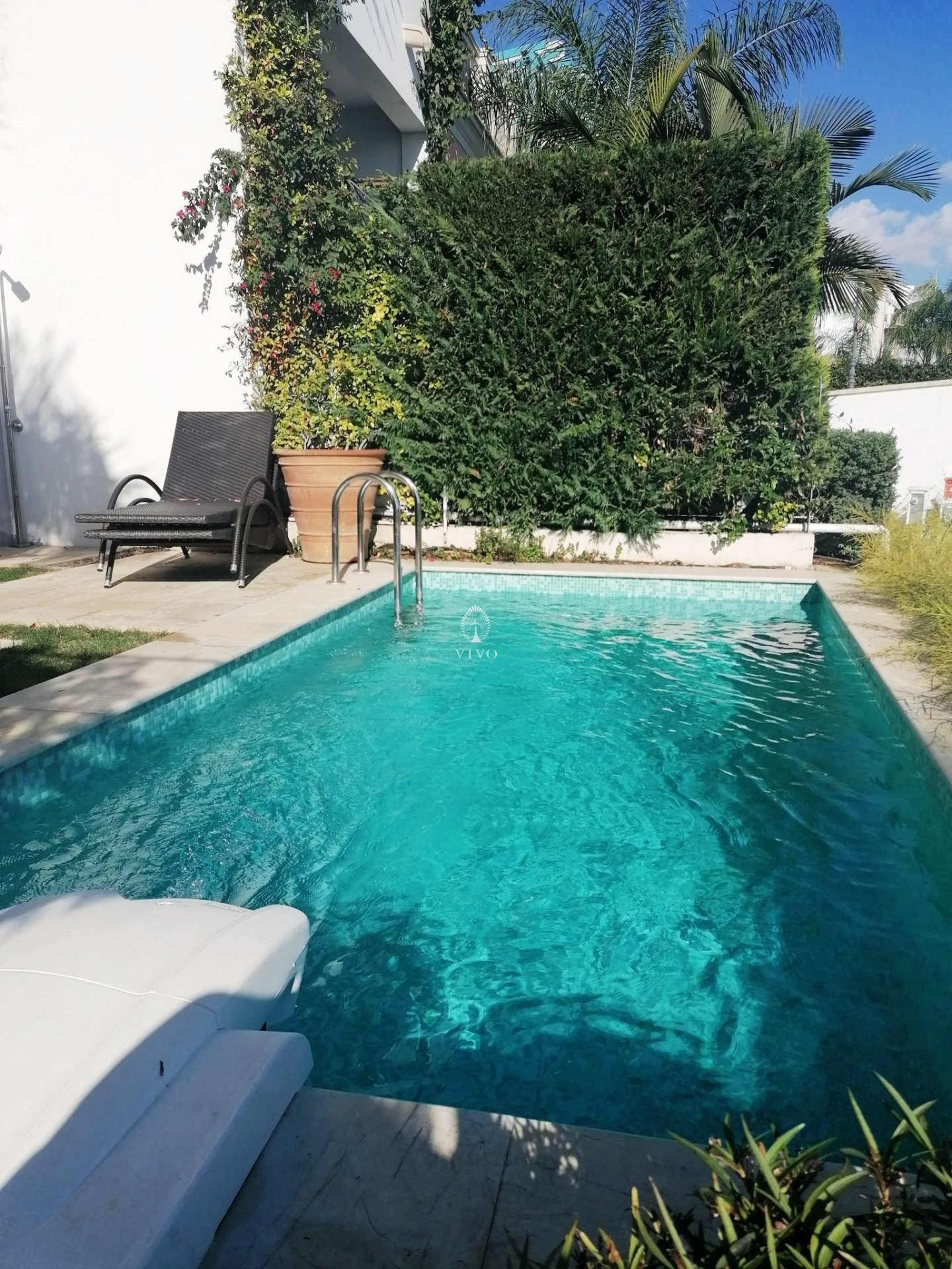 On the Ground floor you will find an open plan living area with kitchen with direct views to the Mediterean sea , a private pool and a private berth
