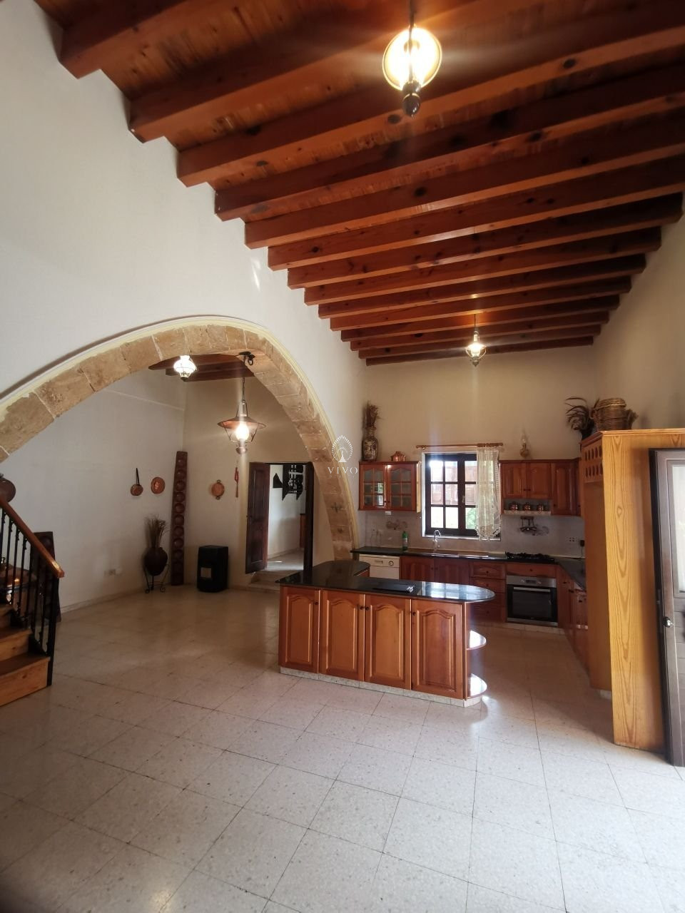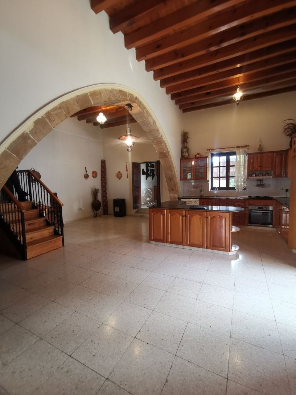 This traditional property is on two levels and consists of ground level an open plan fitted kitchen with all electrical supplies. Walking through the property you can easily feel the spacious sitting /living/dining area with a high ceiling. One separated bedroom is on the ground floor area plus one office area. A separated kitchenette area and a guest w.c. Upper floor two spacious bedrooms and a bathroom. One of the 2 bedrooms has a big balcony to enjoy your morning coffee with spectacular views of the village.