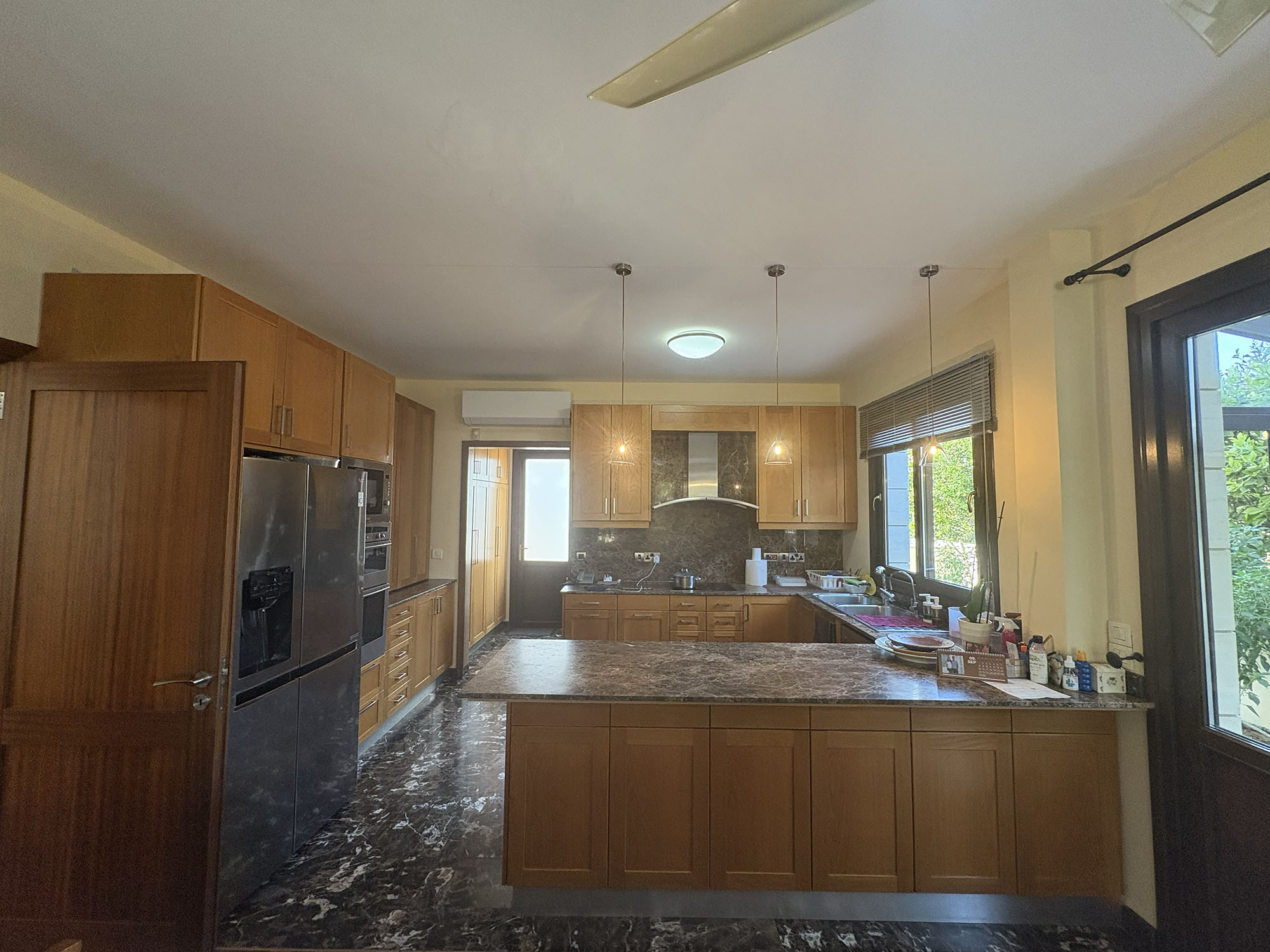 Located in a peaceful and desirable neighborhood of Platy Aglatzia, this elegant home sits at the end of a quiet cul de sac near a green area, pedestrian walkway, and primary school. Built in 2006, it features bright, spacious interiors with open plan living and dining areas that overlook the garden and private pool. The kitchen flows into a cozy family room with a fireplace, and there is a guest ensuite on the ground floor. Upstairs are three large bedrooms, including a master ensuite, and a home office. The lower level includes a self contained maid’s room and ample storage. Outdoors, the covered veranda and garden offer space for entertaining and enjoying the Mediterranean lifestyle.