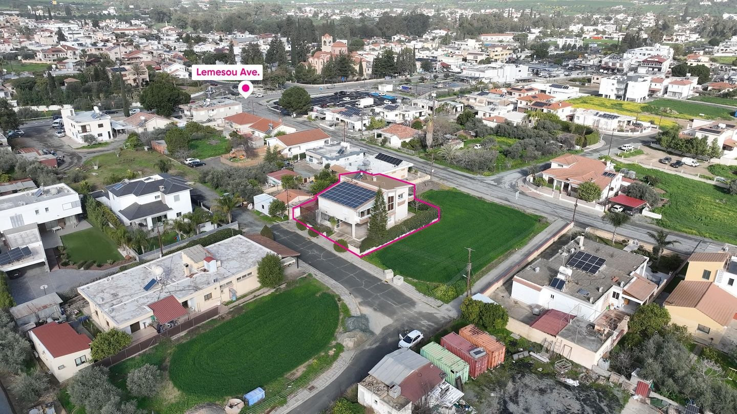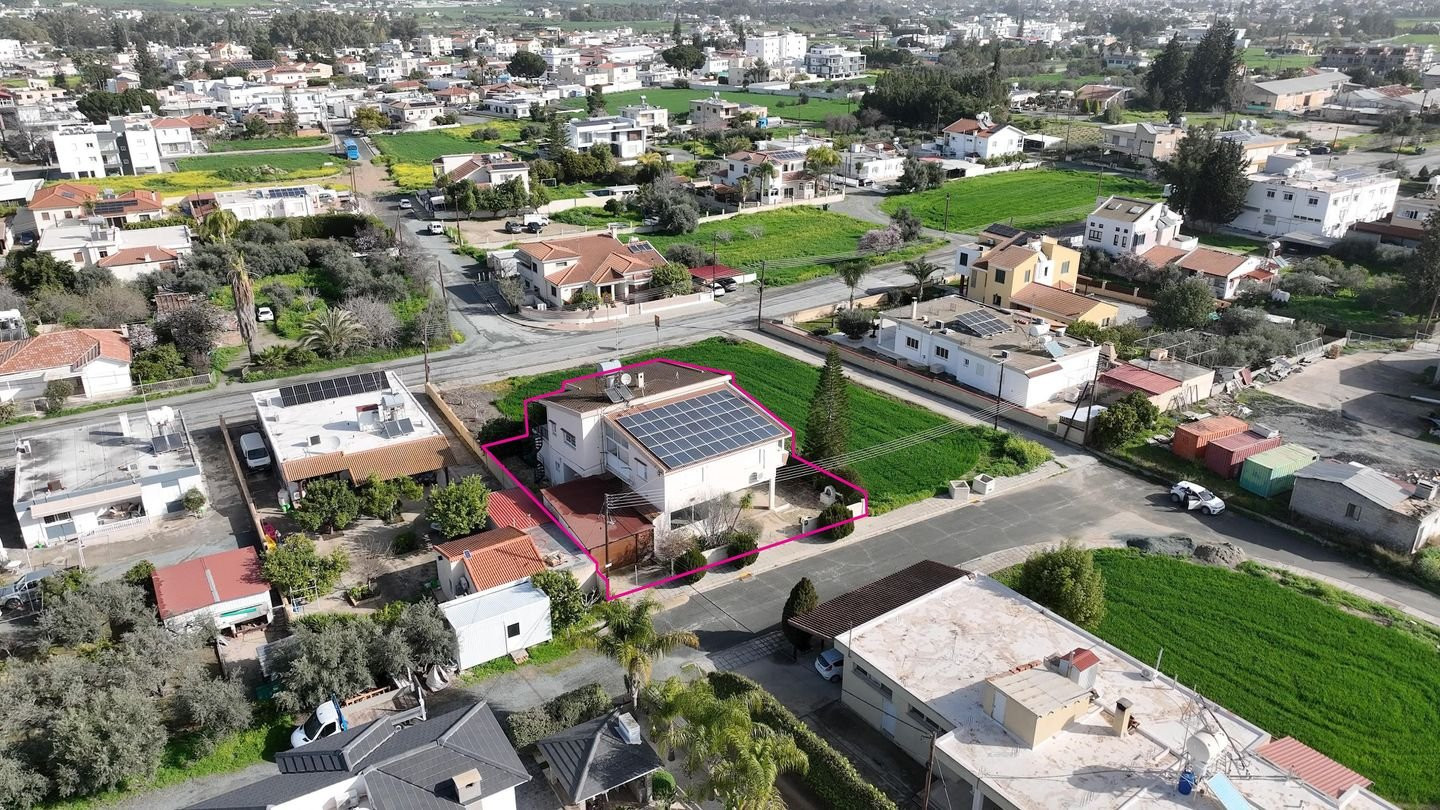 An excellent opportunity to acquire a two-storey detached residence, located in Pera Chorio, within the Southern Nicosia – Dali Municipality. The property enjoys a prime residential setting, combining quiet neighborhood living with immediate access to main road connections and everyday amenities. The house was constructed in two phases (upper floor in 1988 and ground floor in 1991) on a registered plot of 518 sq.m., benefiting from approximately 23 m. of frontage along Amathounta Street on its southern boundary. Prime Location: •890m northeast of the Pera Chorio–Nisou interchange. •135m east of Lemesos Avenue. •450m from Pera Chorio Primary School and 850m from the Gymnasium. •Offers quick access to Nicosia while maintaining a peaceful environment. Property Layout: •Ground Floor (Approx. 80 sq.m. internal area): •Kitchen and dining area. •One (1) bedroom and a bathroom with shower. •External Features: 24 sq.m. covered balcony, 13 sq.m. uncovered area, and a 103 sq.m. piloti/covered parking. •Note: Part of the piloti has been enclosed and converted into a separate room with a kitchen, offering flexibility for guest accommodation or office use. Upper Floor (Approx. 170 sq.m. internal area): •Spacious living and dining area. •Separate kitchen. •Three (3) bedrooms. •Main bathroom (bath/toilet) plus an additional shower room. •Covered verandas: 38 sq.m. Additional Features: •Systems: Central diesel heating and A/C split units. •Ancillary: 5 sq.m. storage/utility building and a yard. Note: Pending issuance of Energy Performance Certificate (EPC).