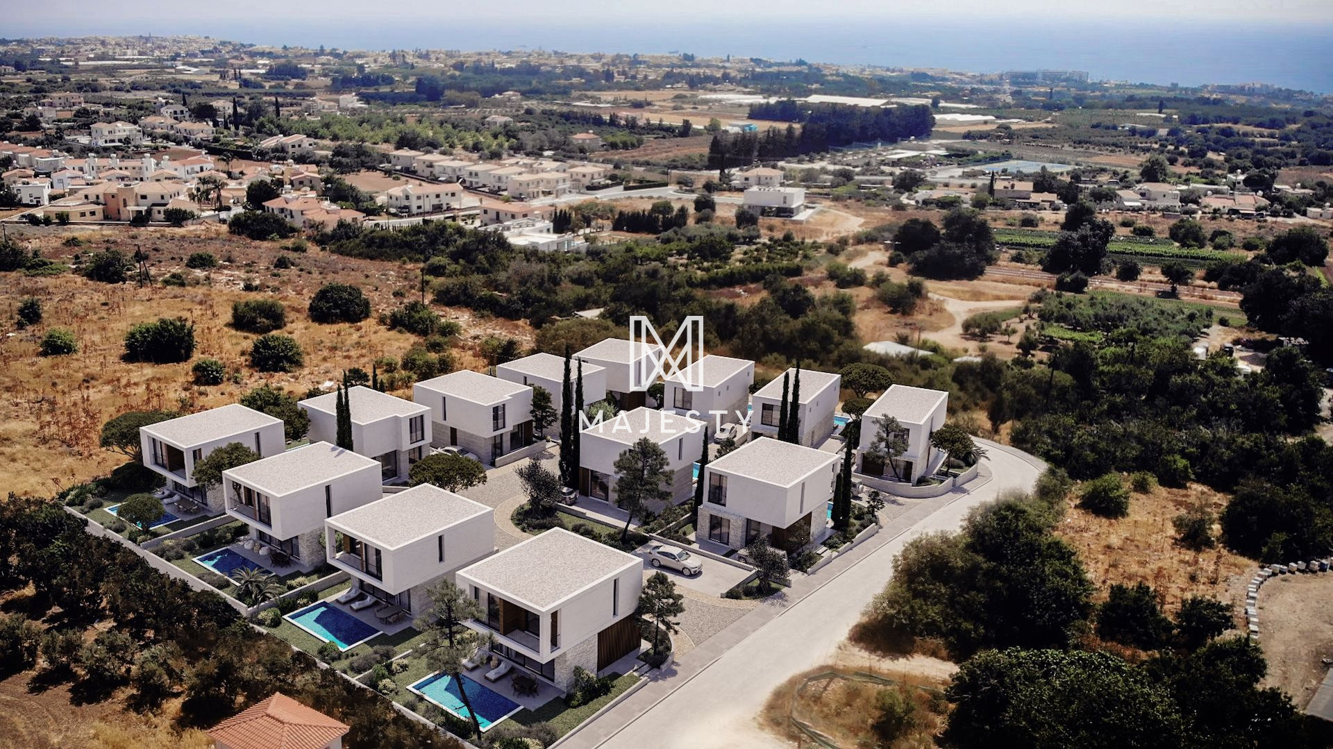 Large windows flood living spaces with natural light, and each villa has VRV cooling and underfloor heating. Situated a short drive from bustling Paphos, this location offers both tranquility and convenience.