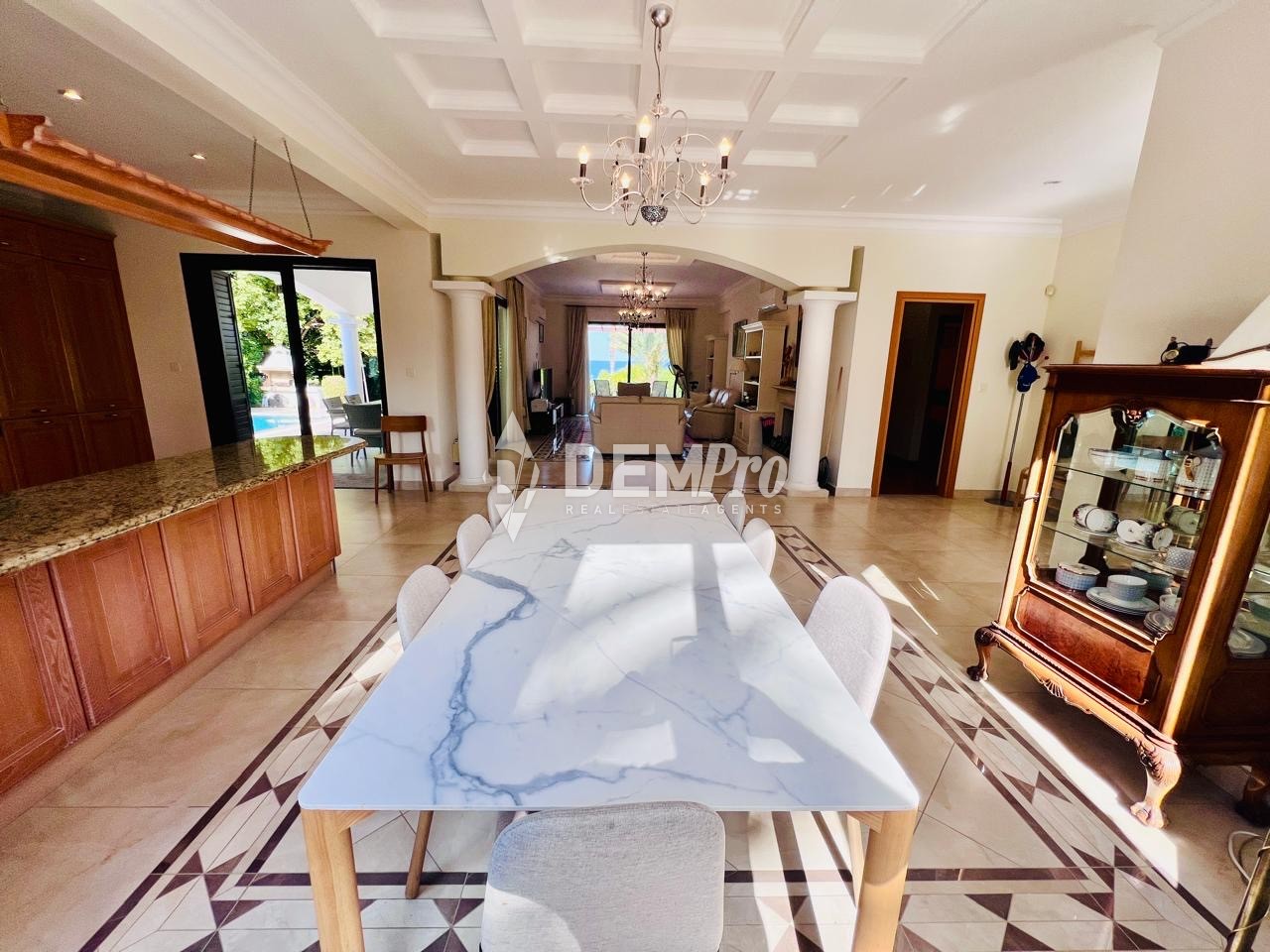This exclusive newly renovated 4 bedroom beachfront villa features a spacious living room with open plan fully equipped kitchen with granite work tops and dining room finished to high standards.