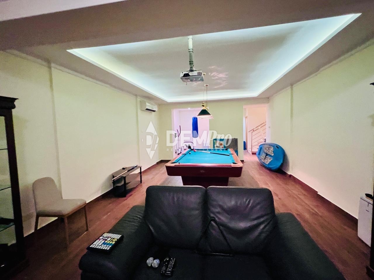 Two bedrooms and master en-suite on the ground floor and one bedroom with walkout to a large terrace/roof garden on the first floor. In the basement you can find a small gym, movie room with pool table.