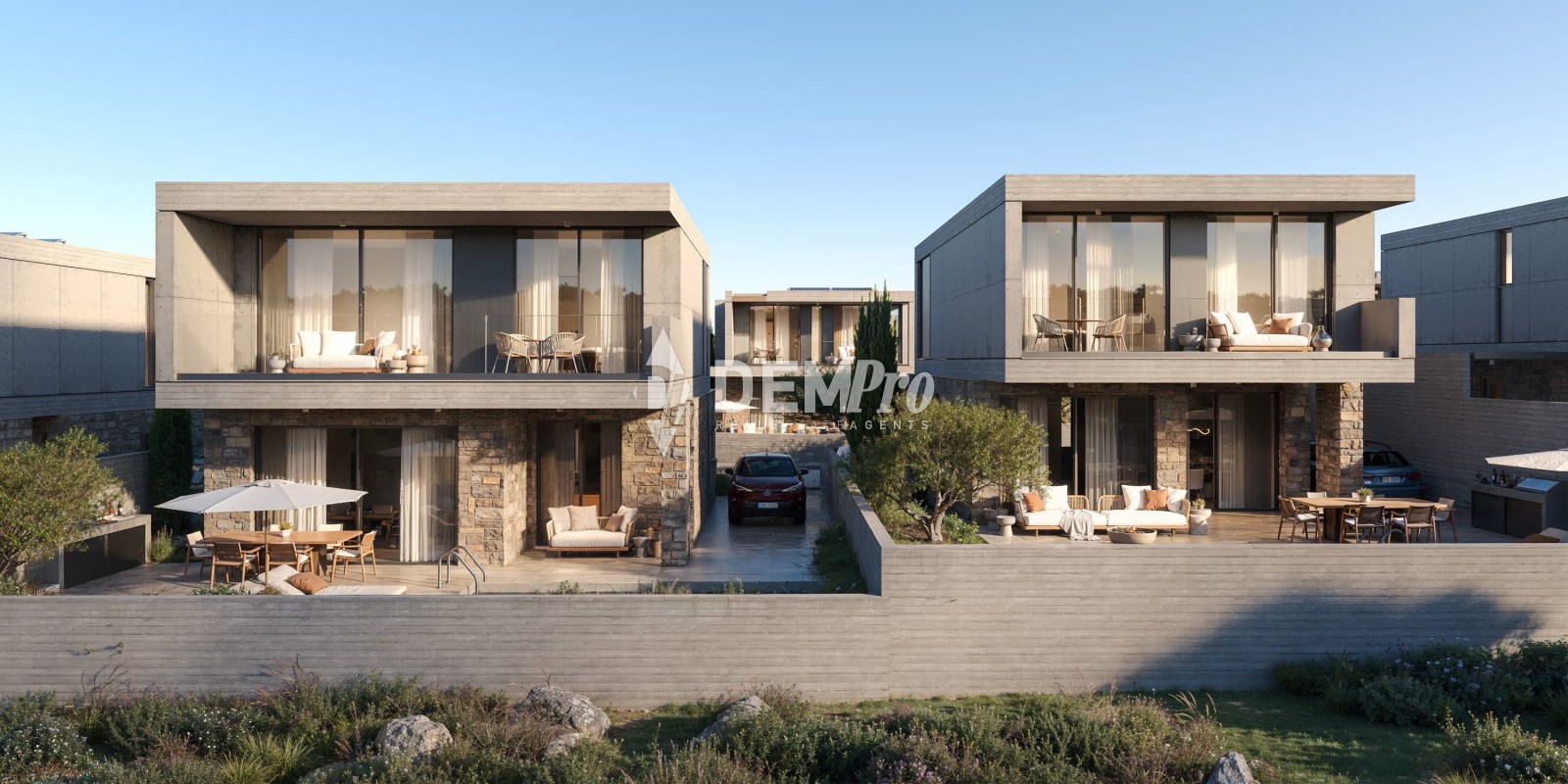 Each villa features covered verandas of 30–35m², with completion expected in June 2027