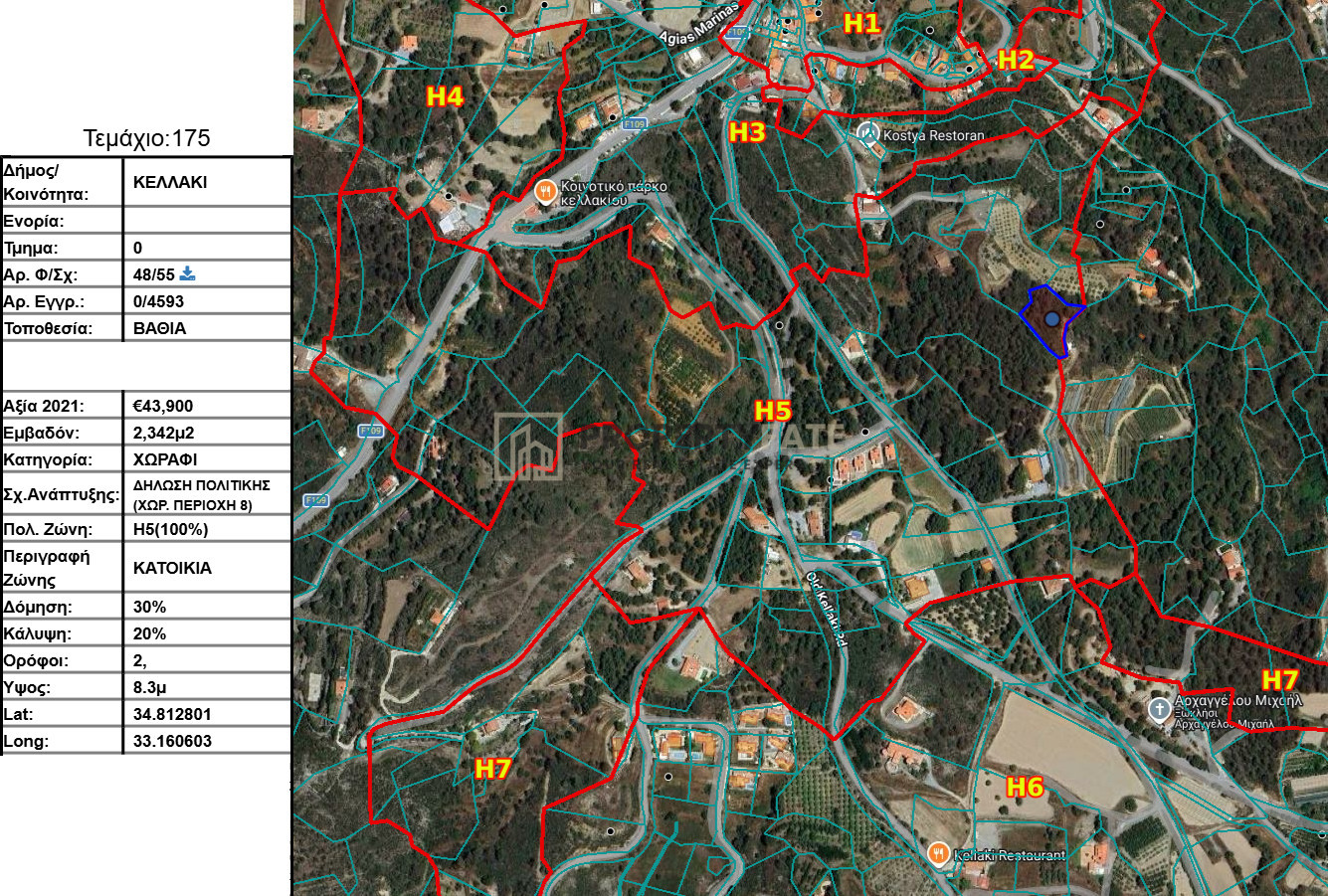 Kellaki has seen steady development in recent years, with new residential properties and enhanced local amenities increasing its appeal while maintaining its traditional character. The plot enjoys convenient access to the nearby tourist areas of Pyrgos and Pareklisia, as well as the main highway, ensuring easy connectivity to Limassol and all essential services. Popular beaches such as Malindi Beach, St. Raphael Beach, and Parklane Beach are approximately 15 km away.