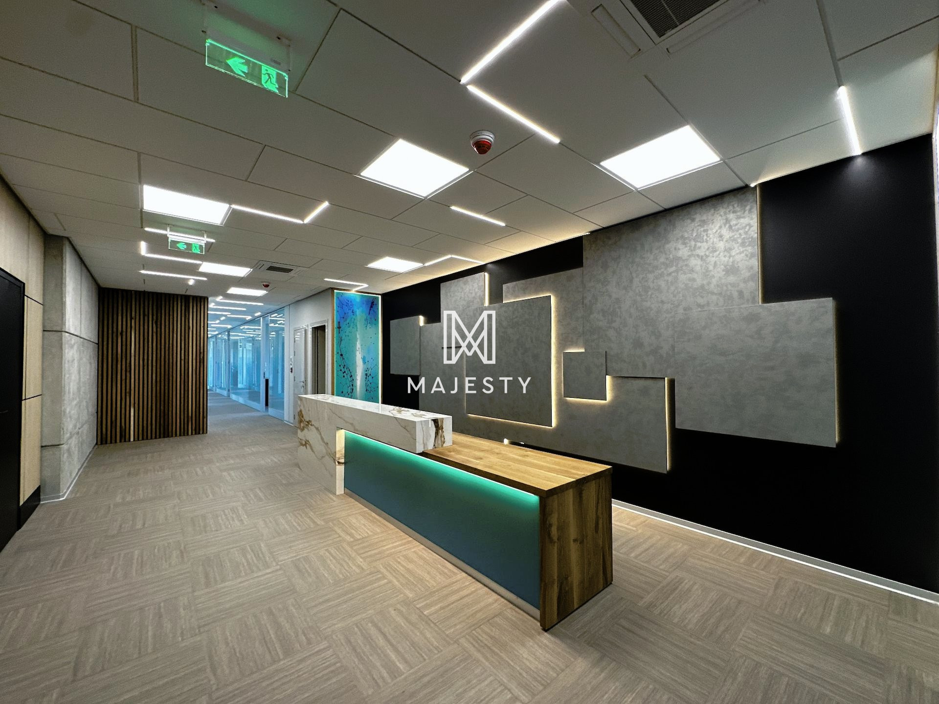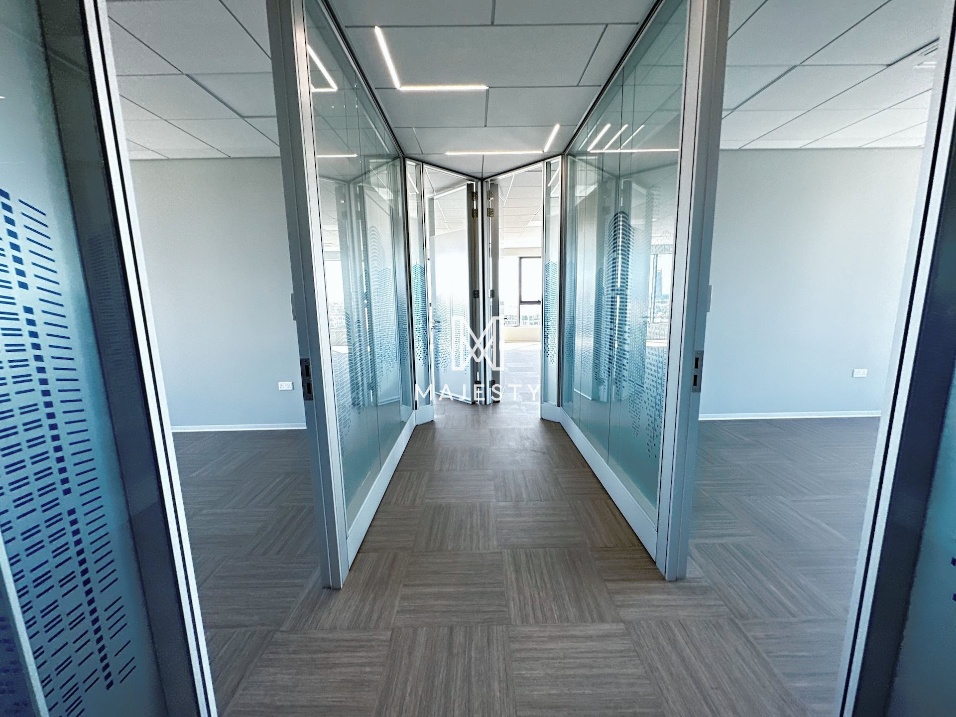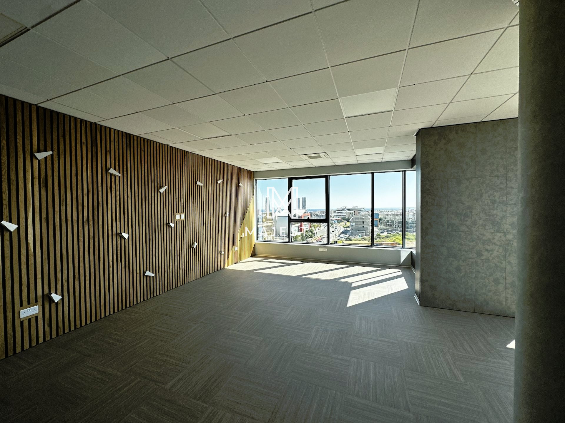 Newly constructed with 13 parking spaces available, including both covered and uncovered options, and boasting a designer interior with 15 enclosed offices, a separate reception area, and 6 separate enclosed toilets with shower facilities. Additionally, the office features 2 server rooms with independent AC supply, a large fitted kitchen with dining area, Mitsubishi Aircon VRV systems, noise insulation in walls, raised floors with Tarkett antistatic and noise insulating floor cover, LED lights by Philips, preinstalled network cabling, and the flexibility to be split into two independent offices with separate entrances, power supplies, and AC systems.