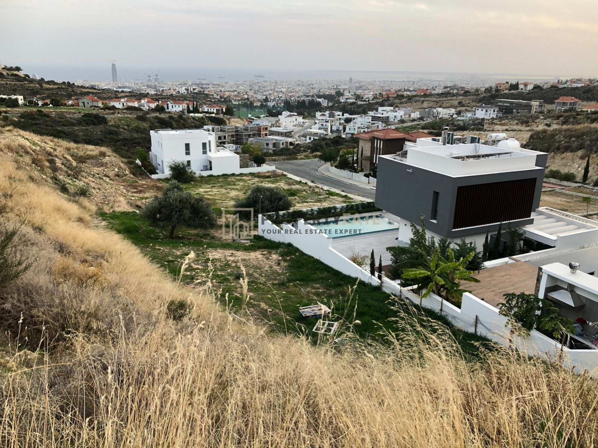 Plot of 1335 sqm for sale in a prestigious area of Agios Athanasios with unobstructed amazing sea-view and view of the entire city of Limassol. This is a corner plot that benefits of a 60 meters road frontage and already acquires an active building permit for the development of two large, four-storey luxury villas. The excellent location of the plot offers amazing views, quick access to the highway and to the city centre and most importantly to all the necessary amenities (Schools, shops, bakeries, cafes, superstores, pharmasies and more). Moreover, the area is rapidly growing with brand-new luxury villas and it is quickly becoming one of the most prestigious area of Limassol.