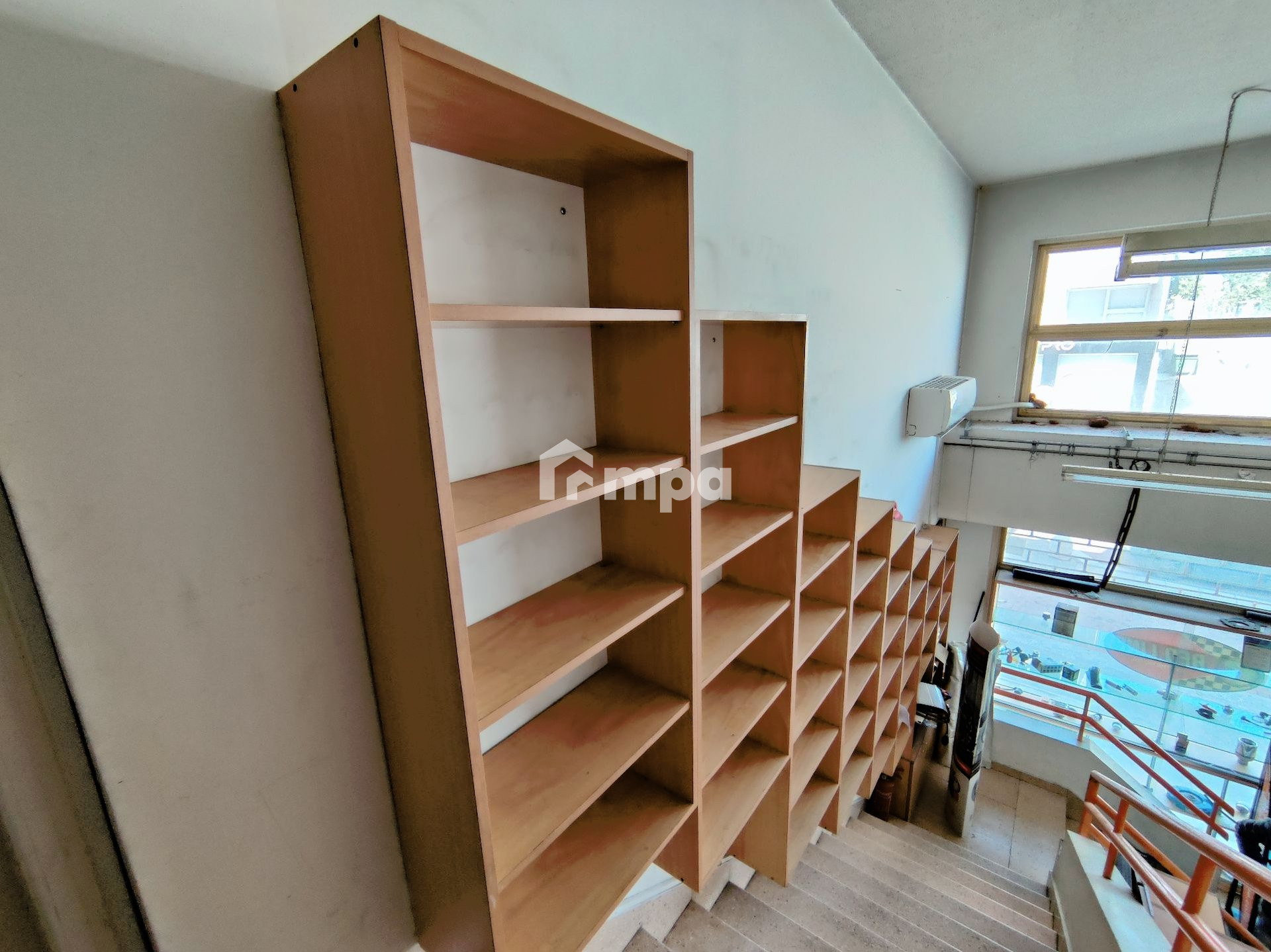 Τhere is an elevator in the basement that transports the stuff to the first floor of the shop.